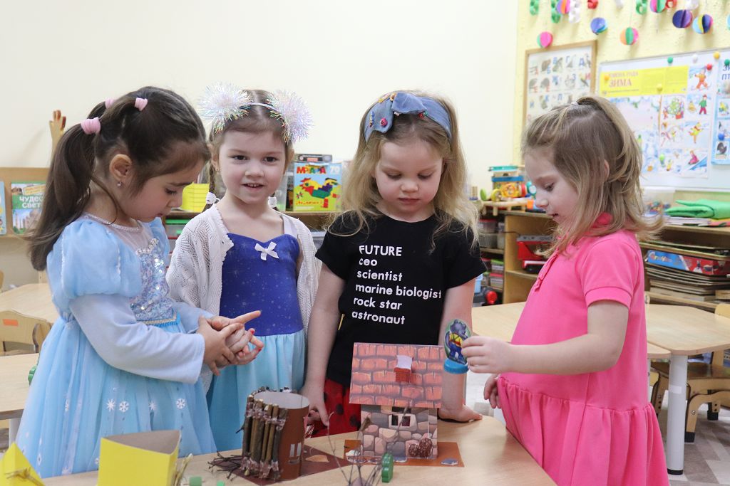 Так в сказке “Три поросёнка” ребята познакомились с различными строительными технологиями: Ниф-Ниф