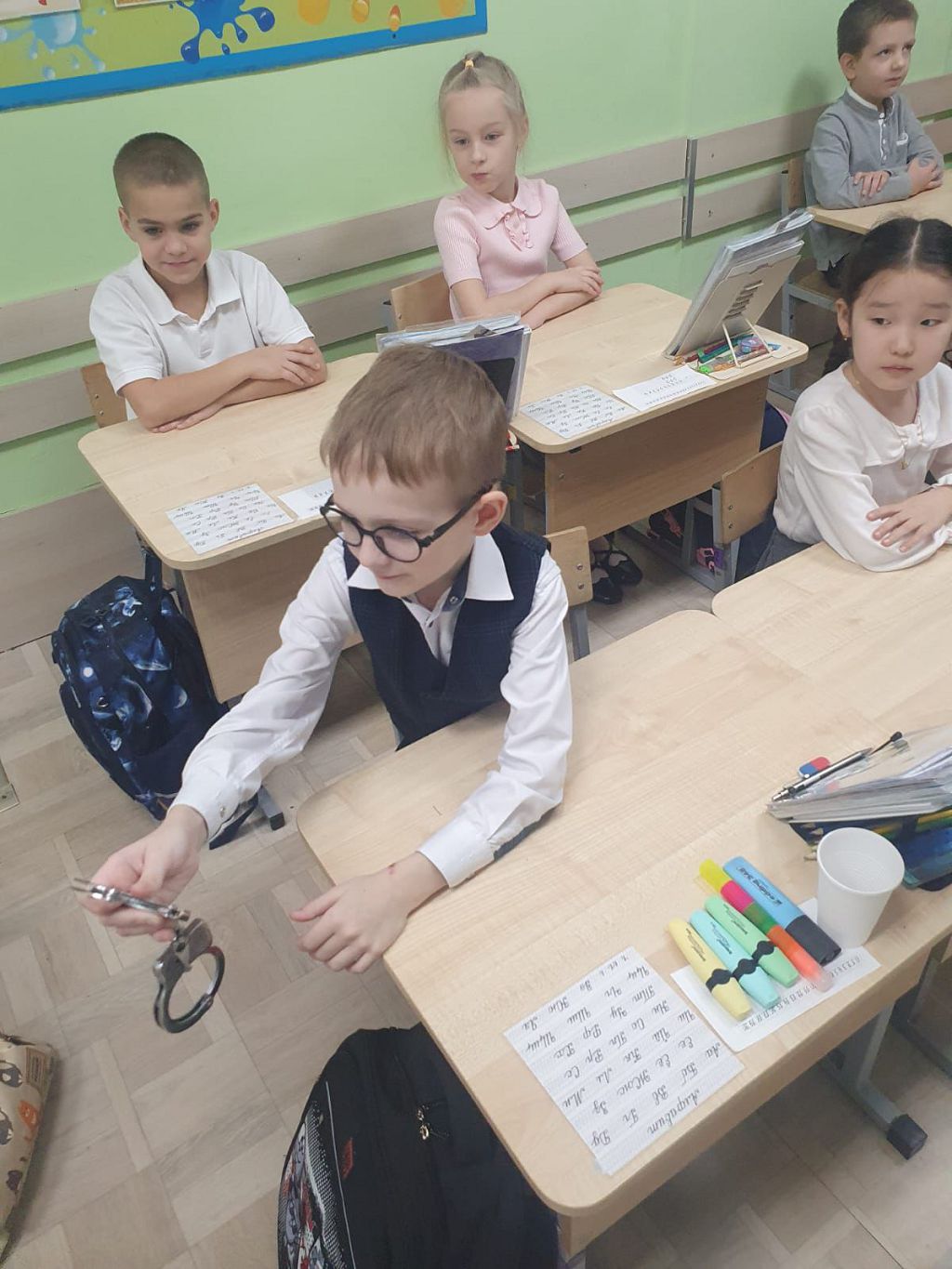 Мансур Равилович показал ребятам некоторые предметы: кастет и даже настоящие наручники! Это было очень волнительно.