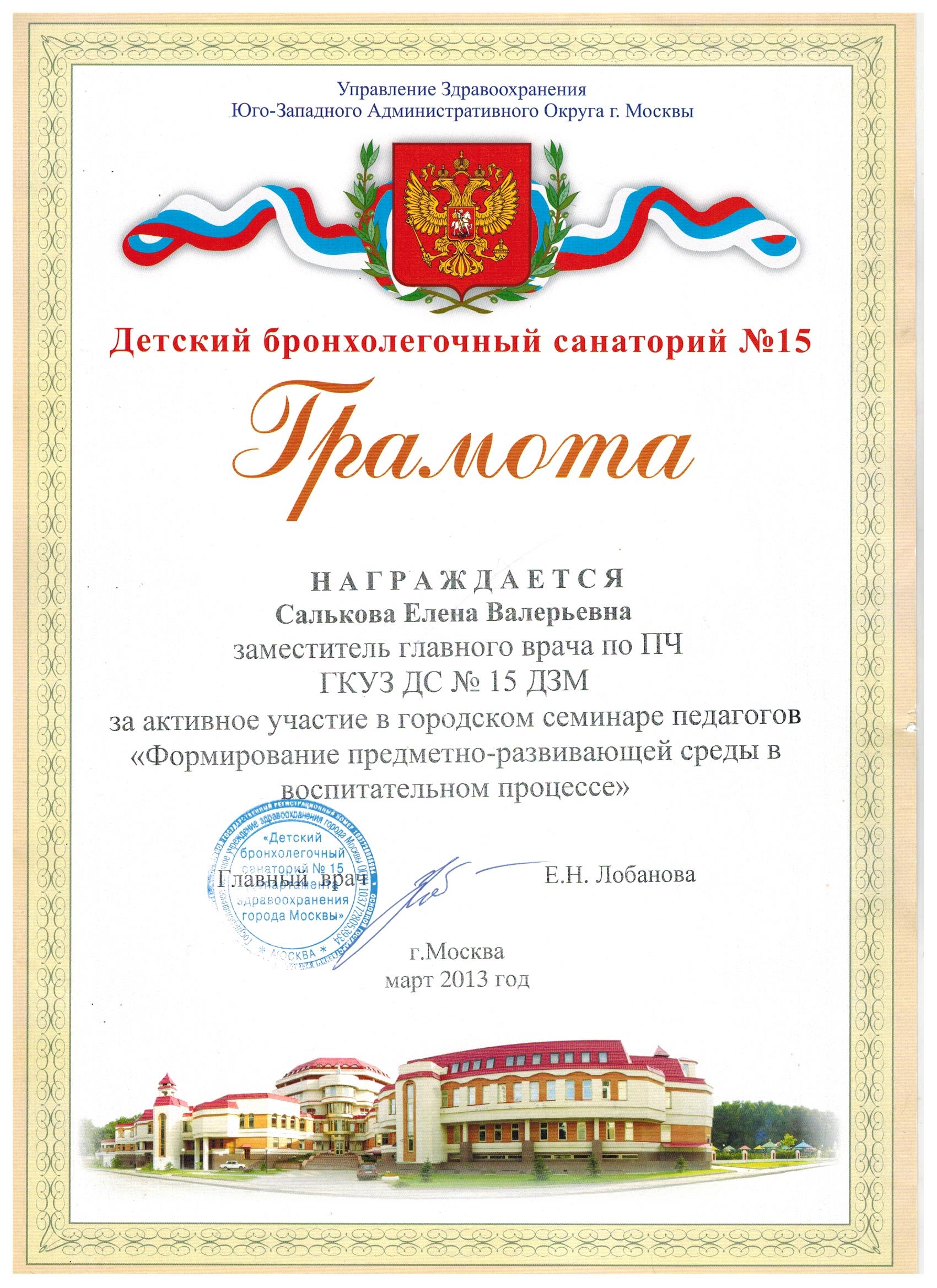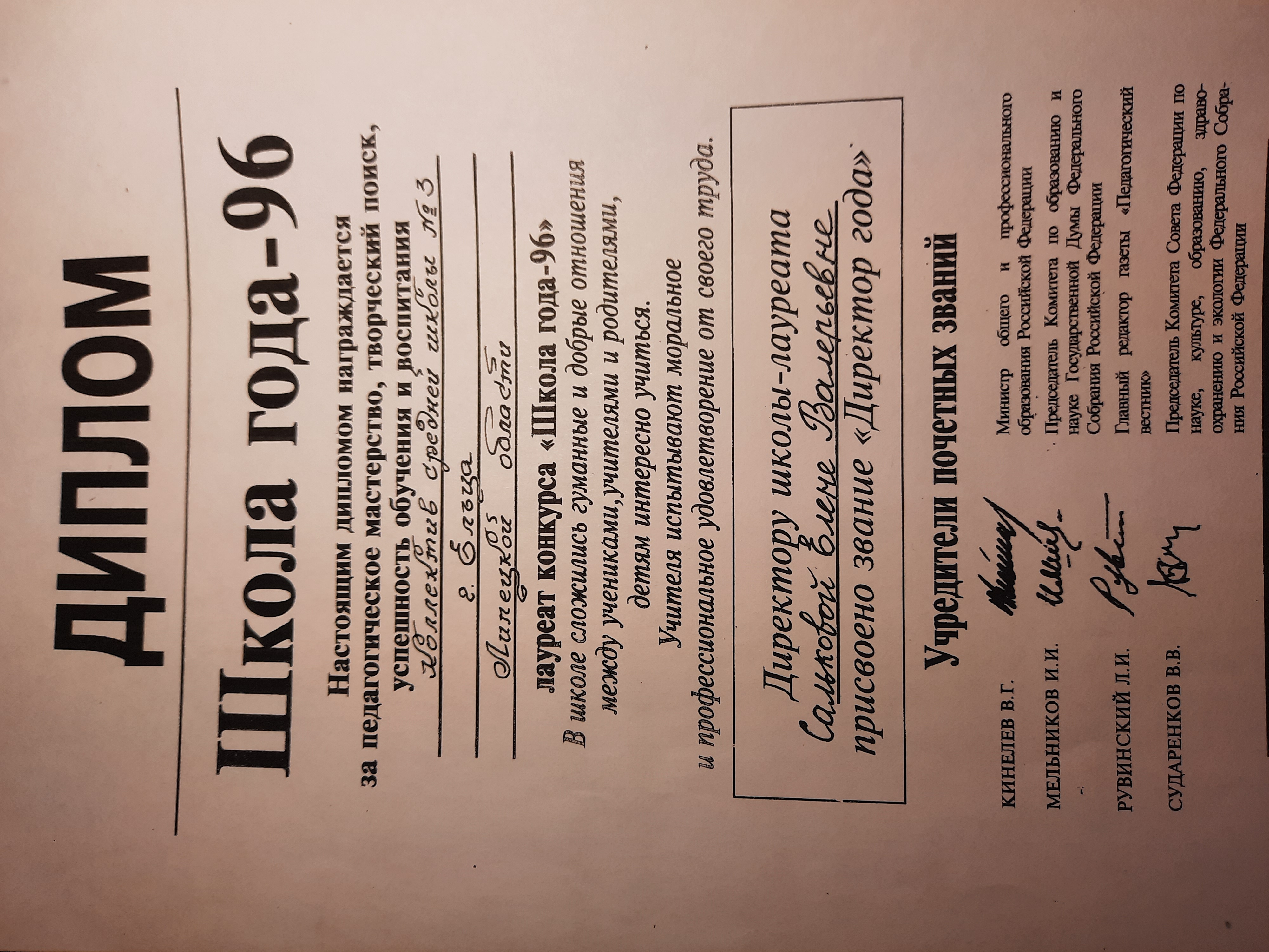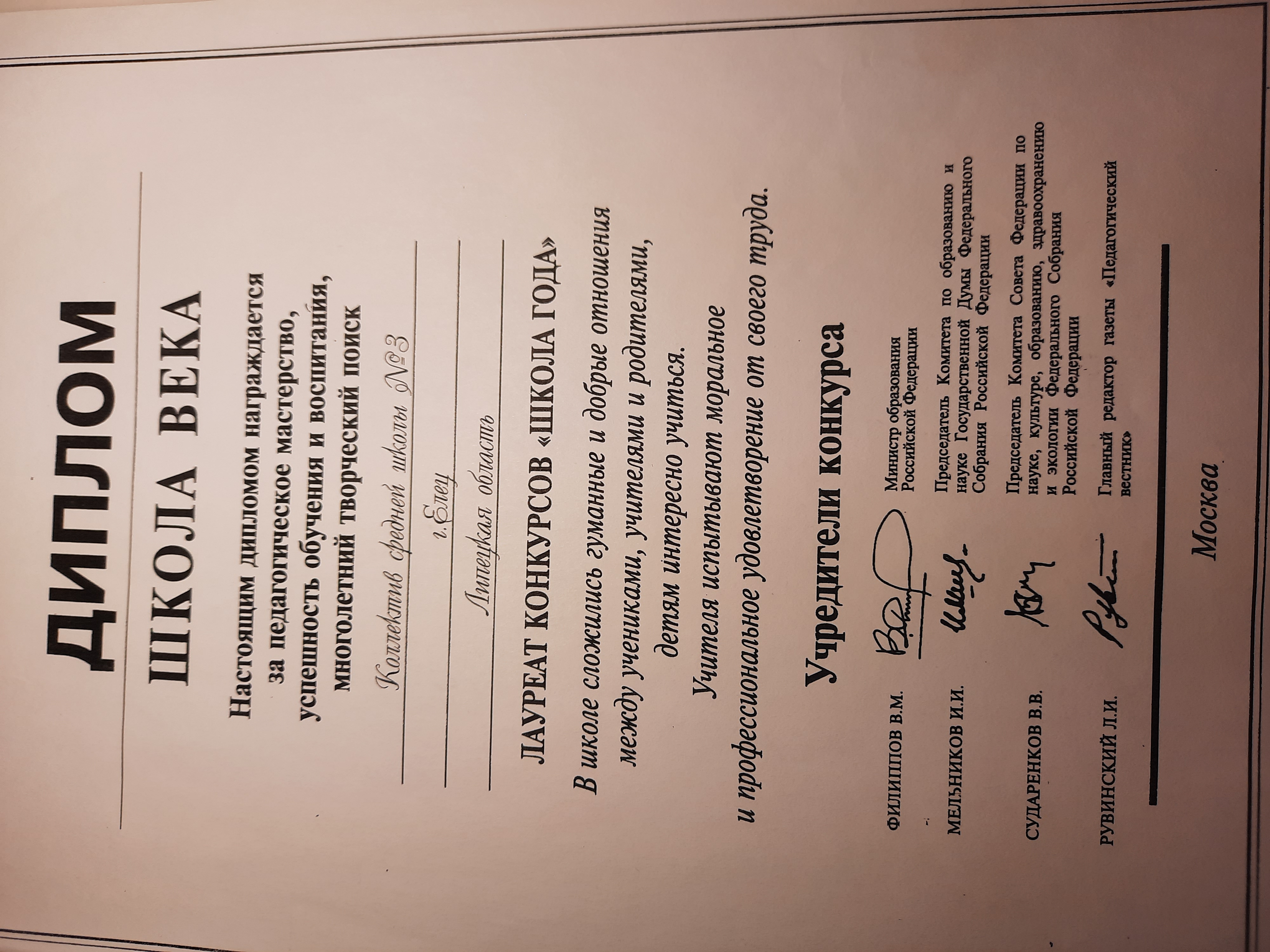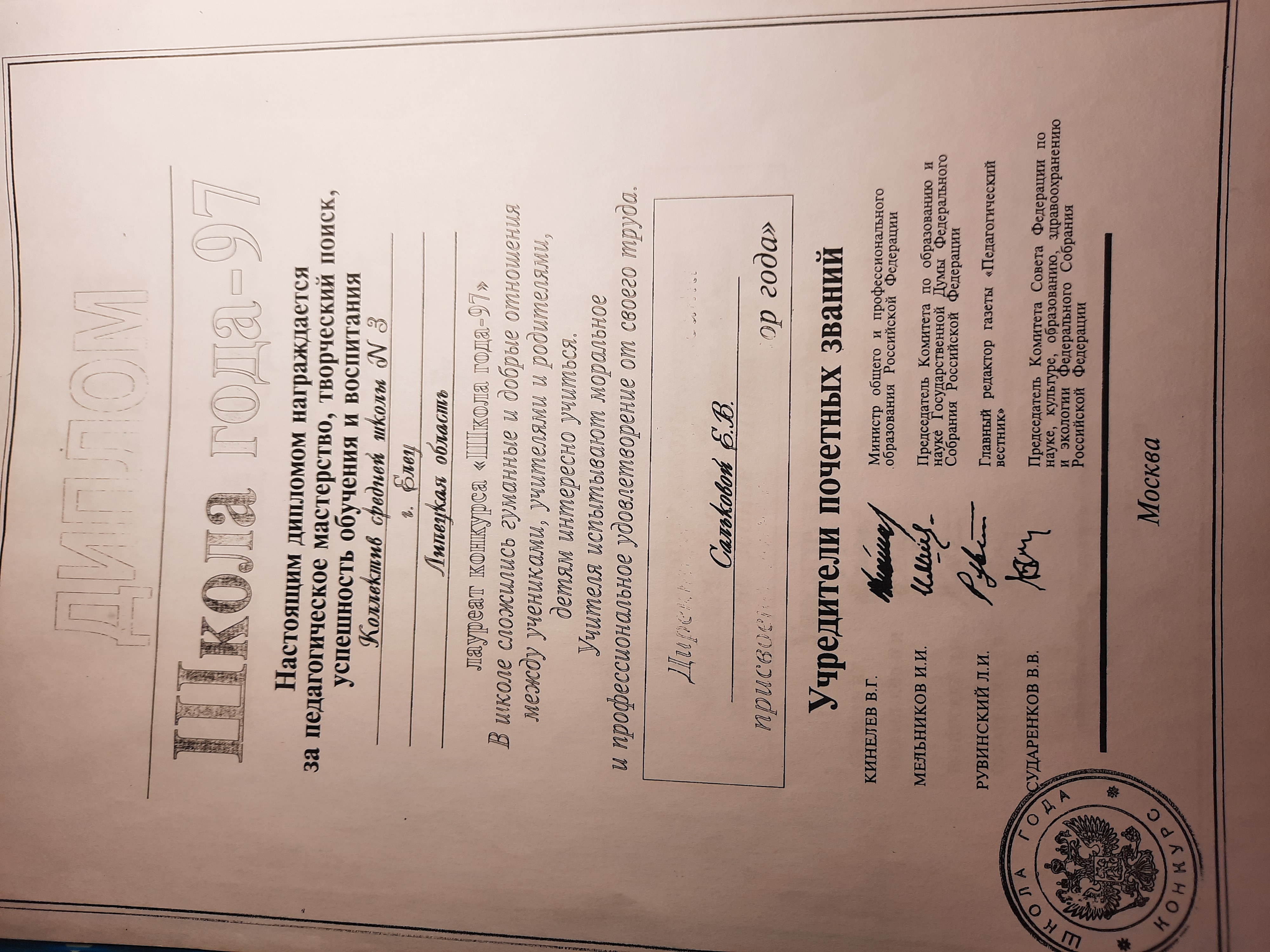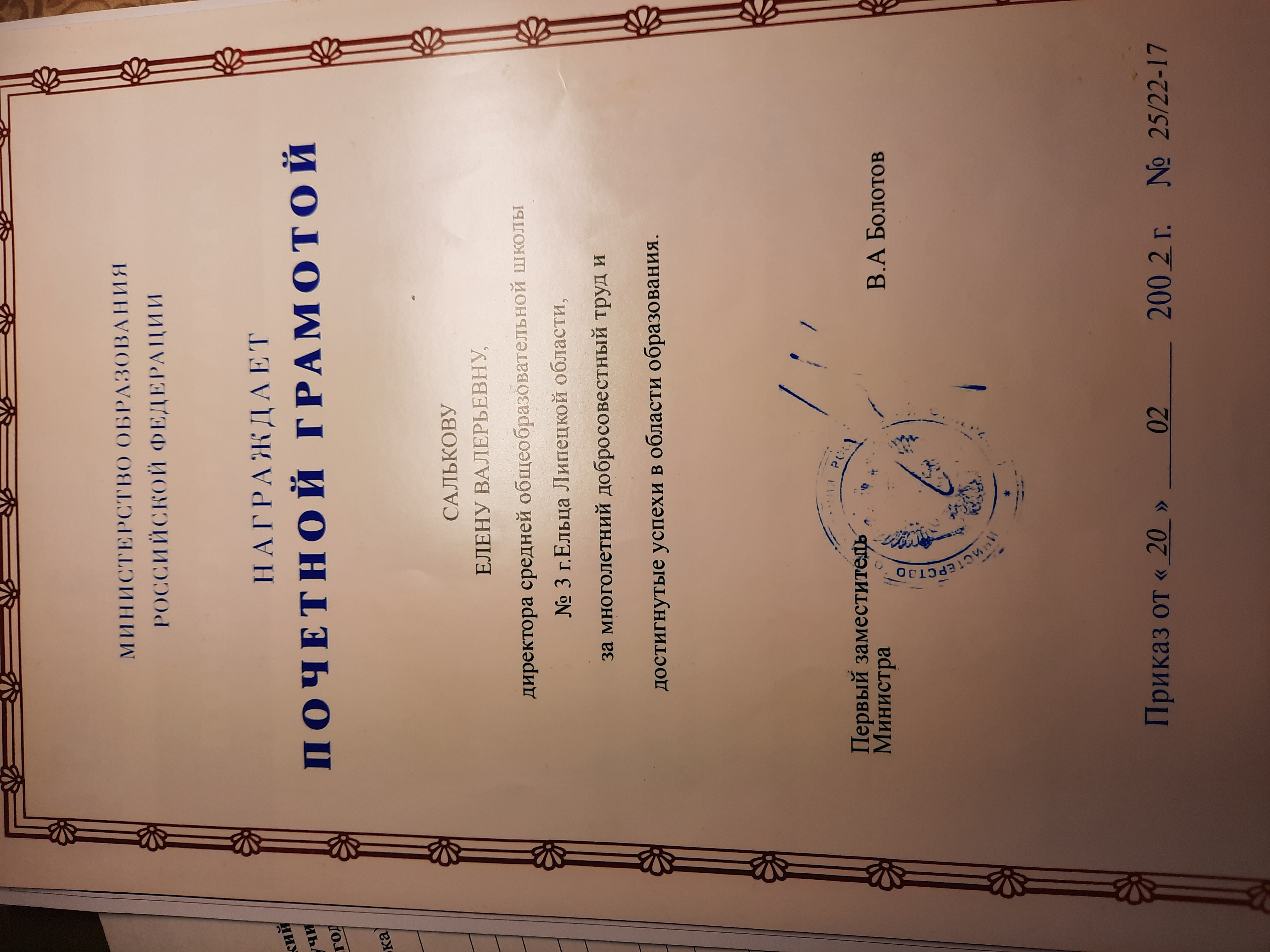 Грамота Министерства Образования РФ