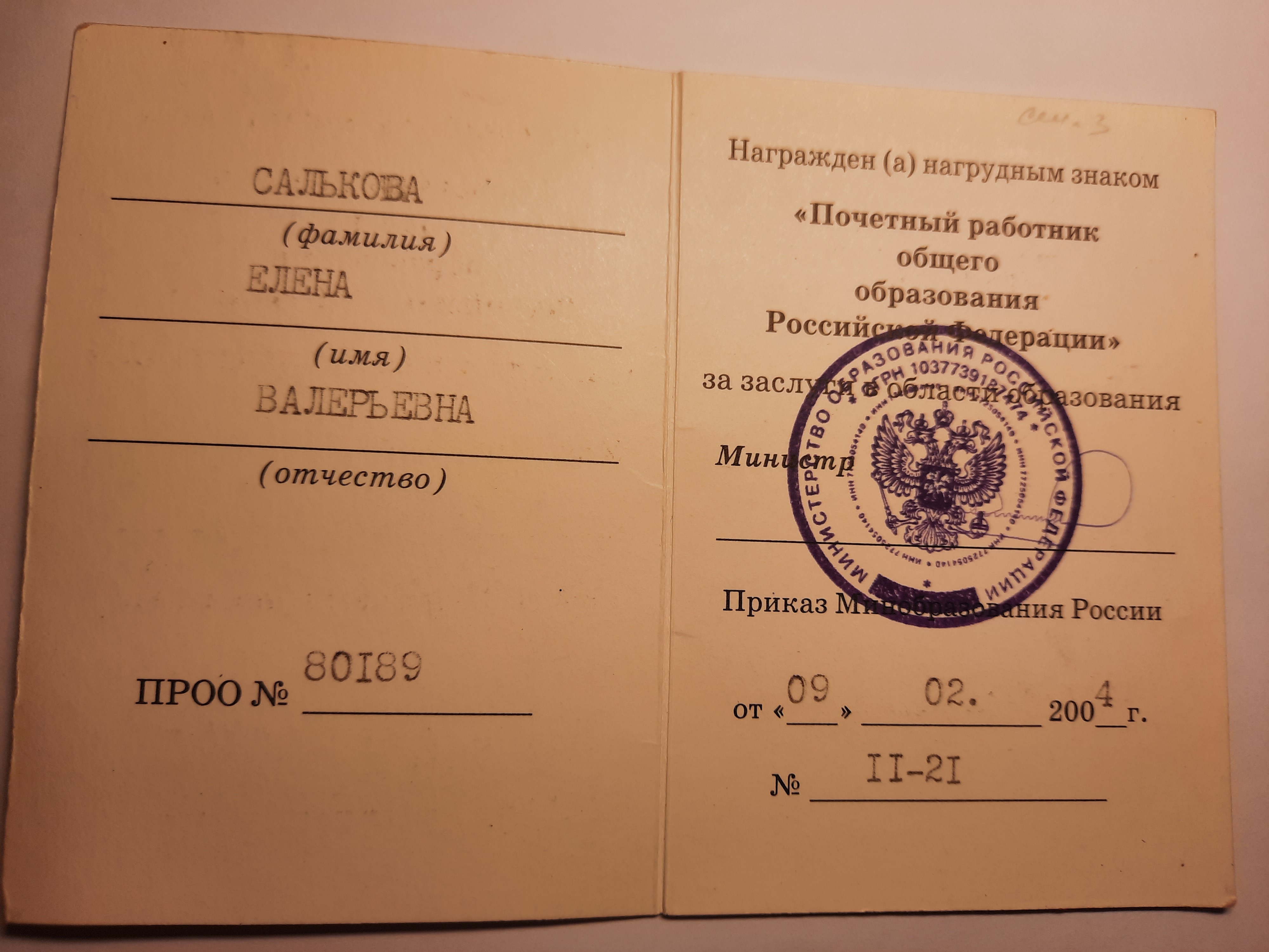 "Почетный работник общего образования РФ",