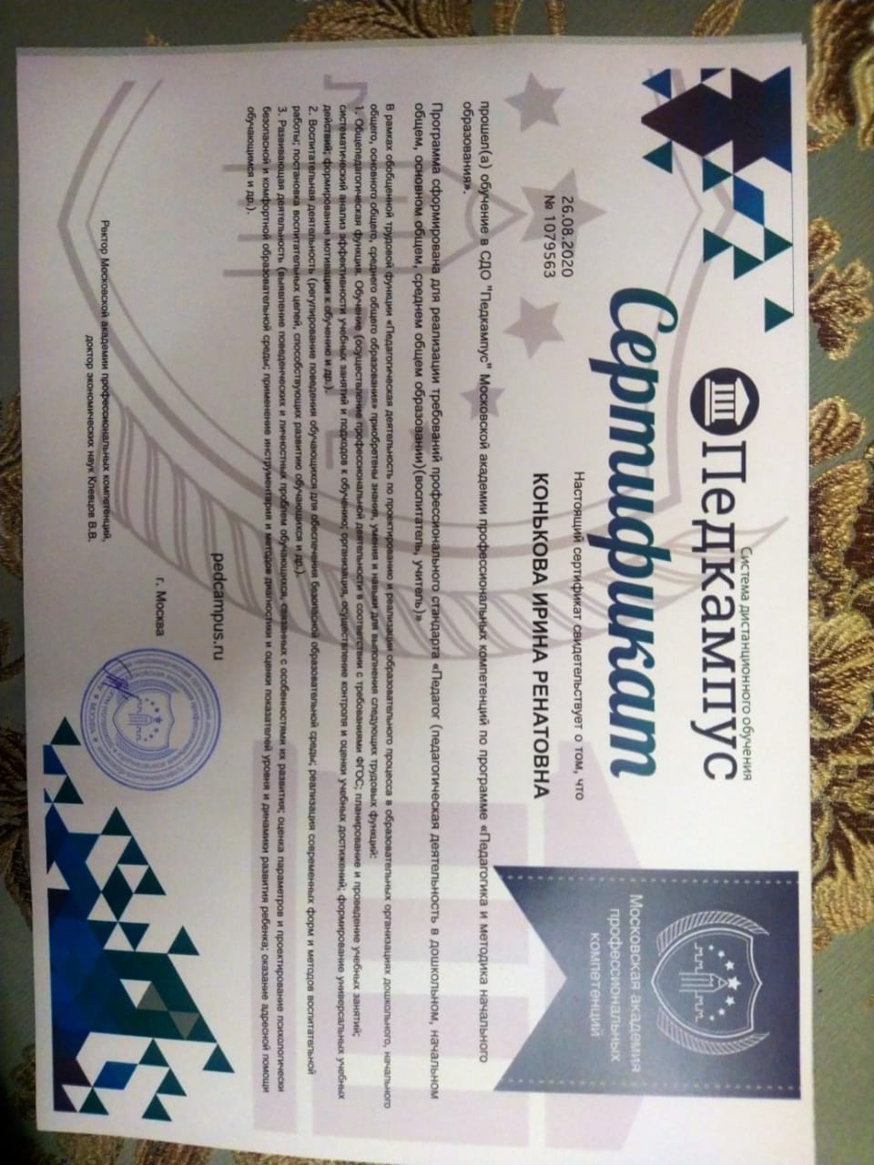Московская академия профессиональных компетенций: учитель начальных классов, педагог дополнительного образования взрослых и детей.