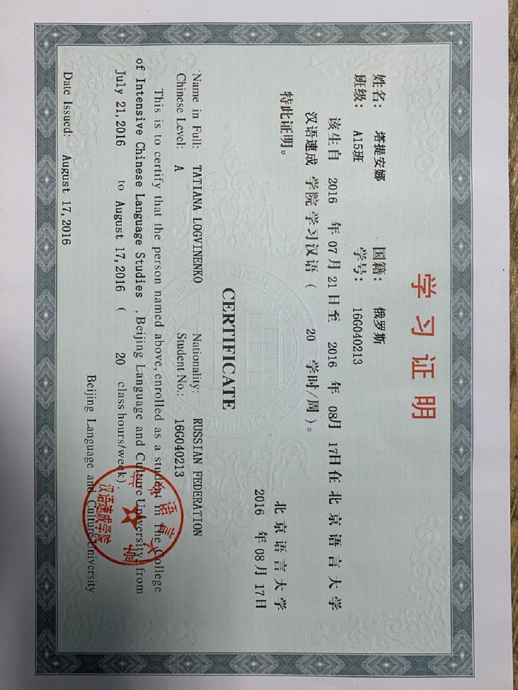 Стажировка: Институт иностранных языков. г. Пекин 2016 г.