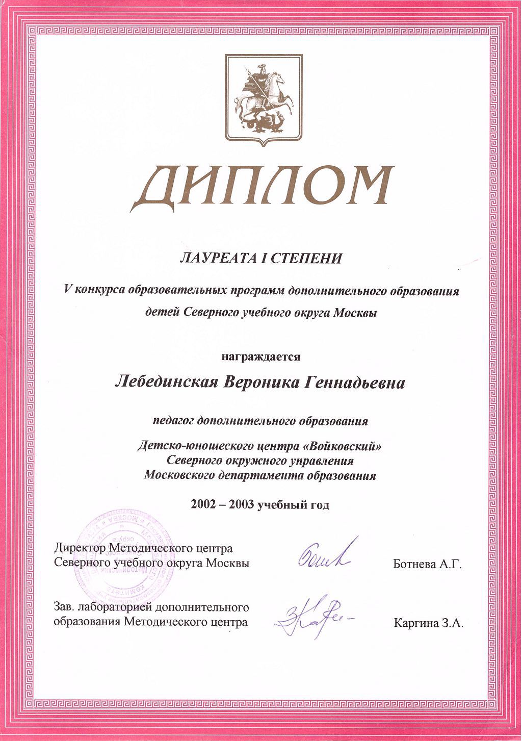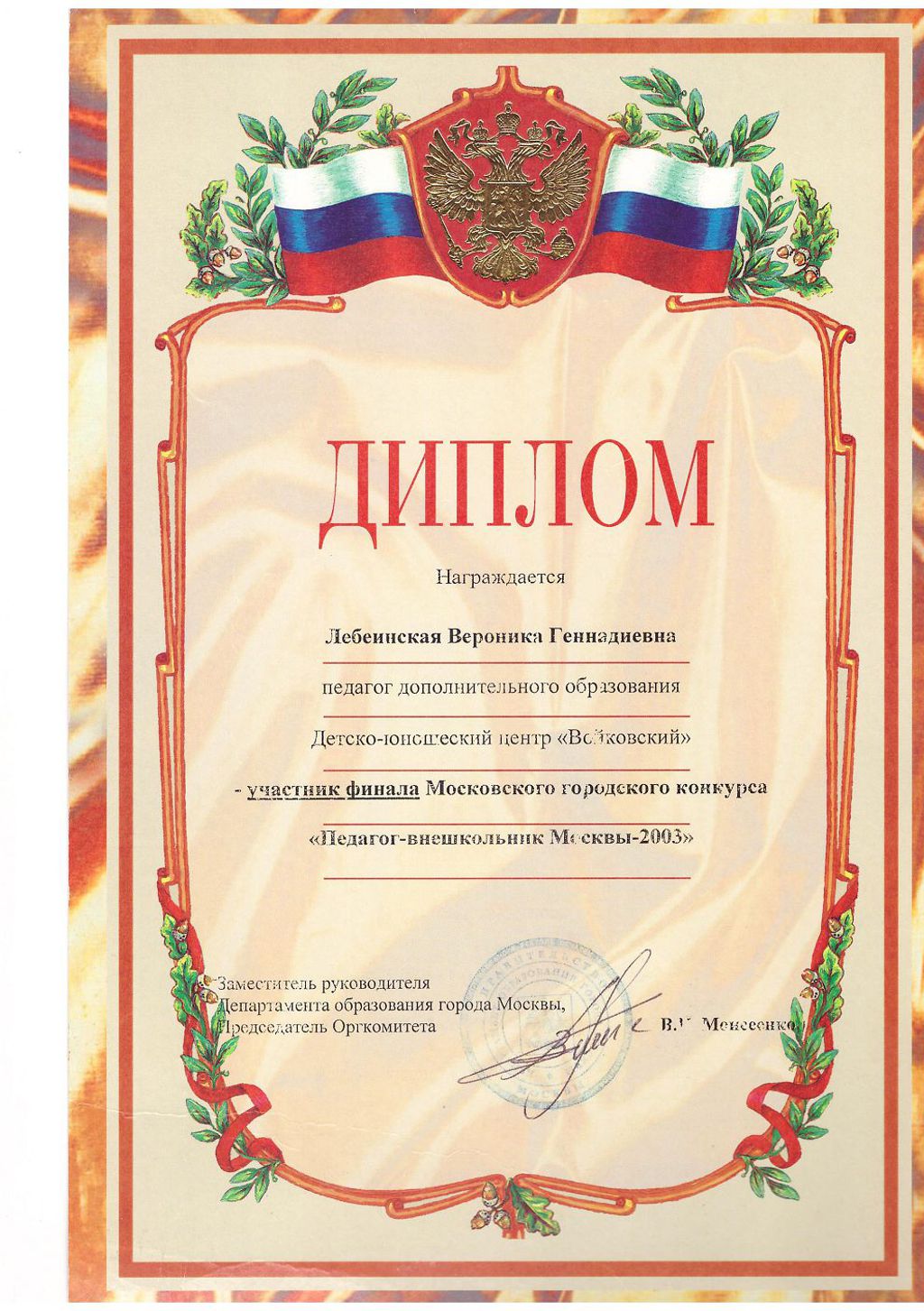 • 2002-2003 финалист Московского конкурса педагог-внешкольник.