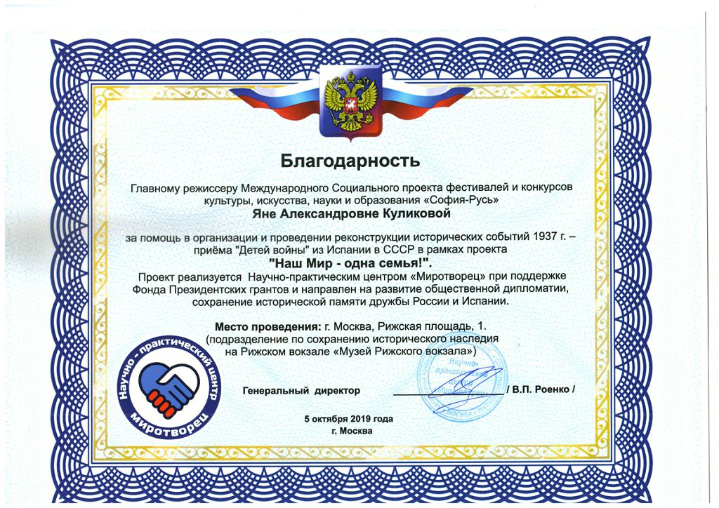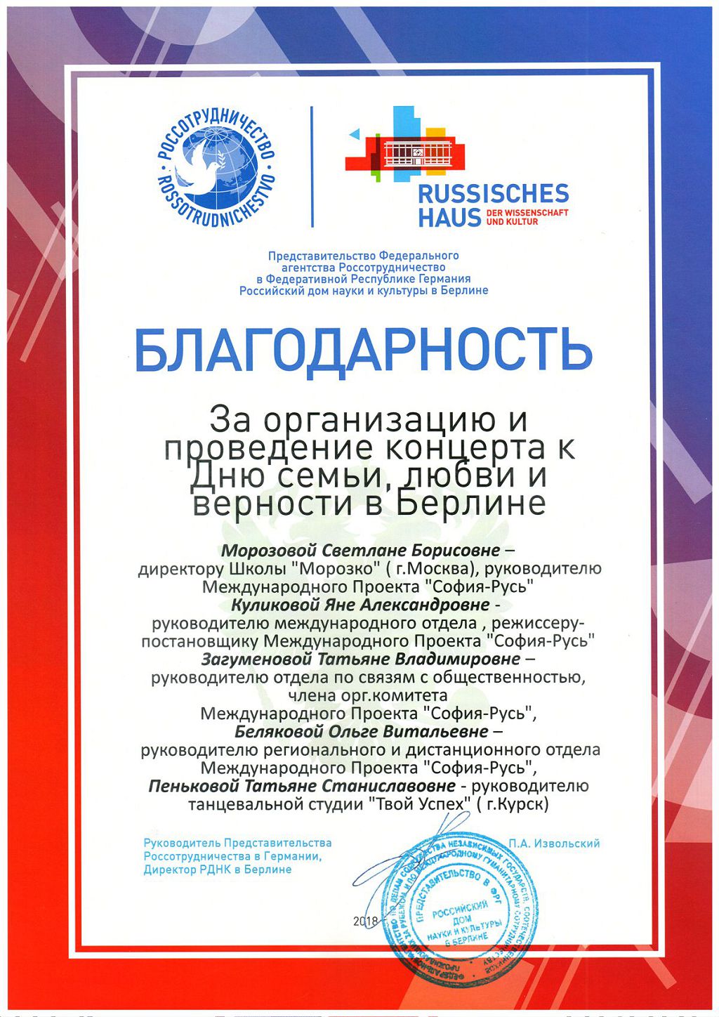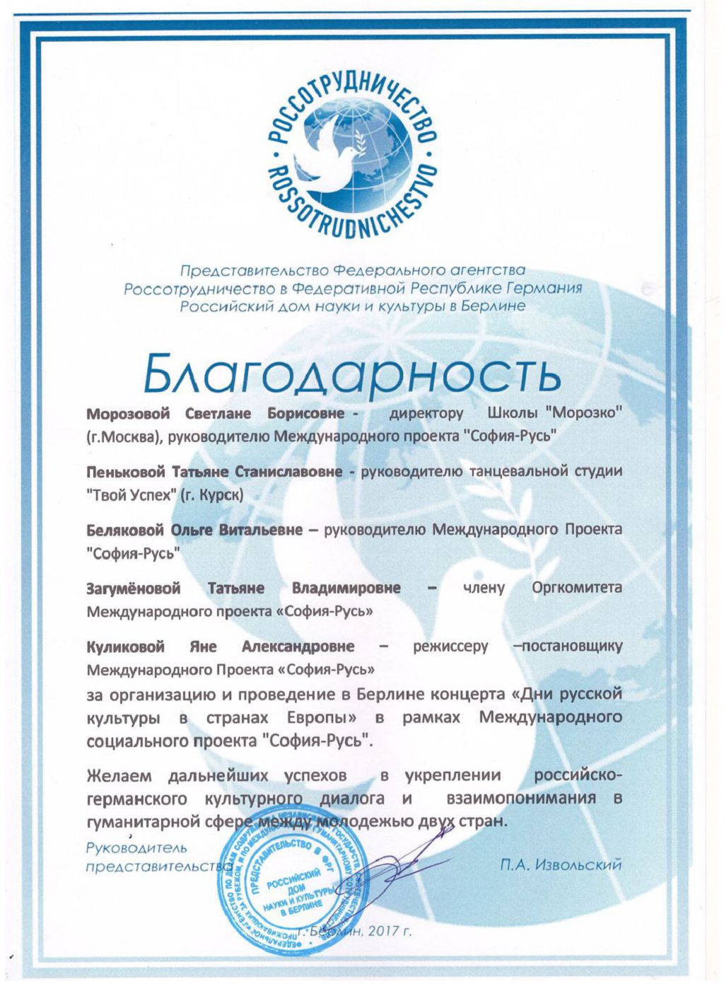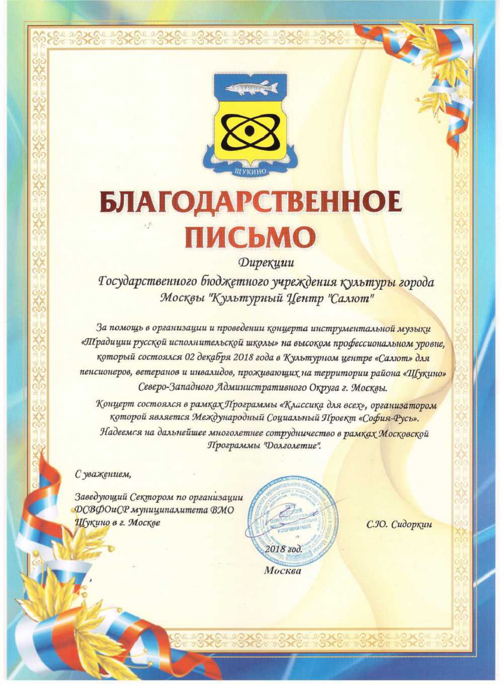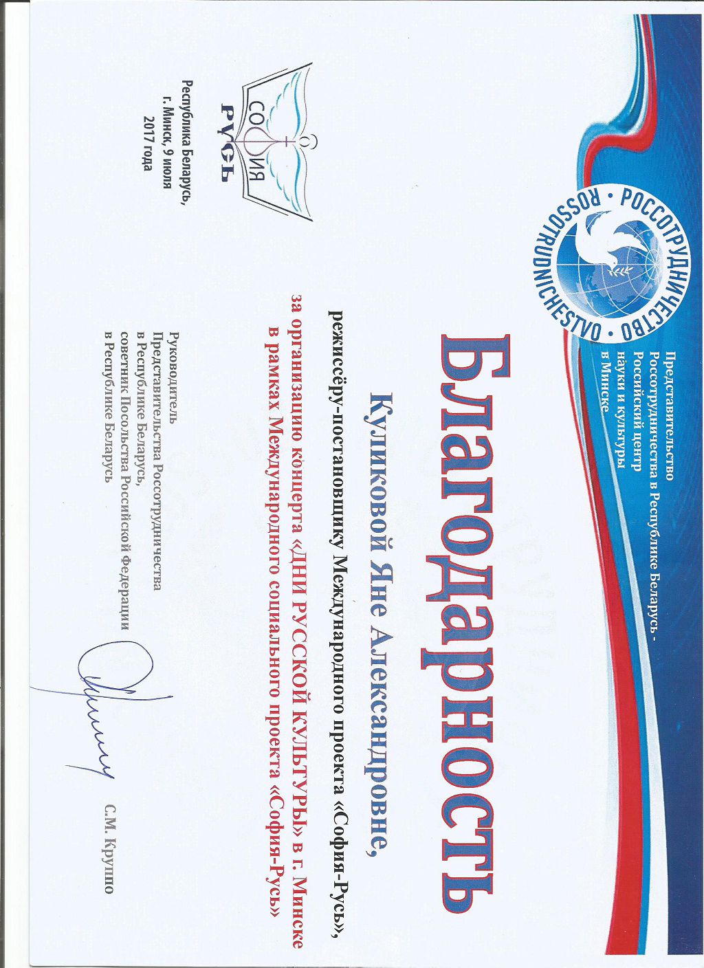 - Художественный руководитель Международного проекта «София-Русь», «Дни русской культуры в странах Европы»,