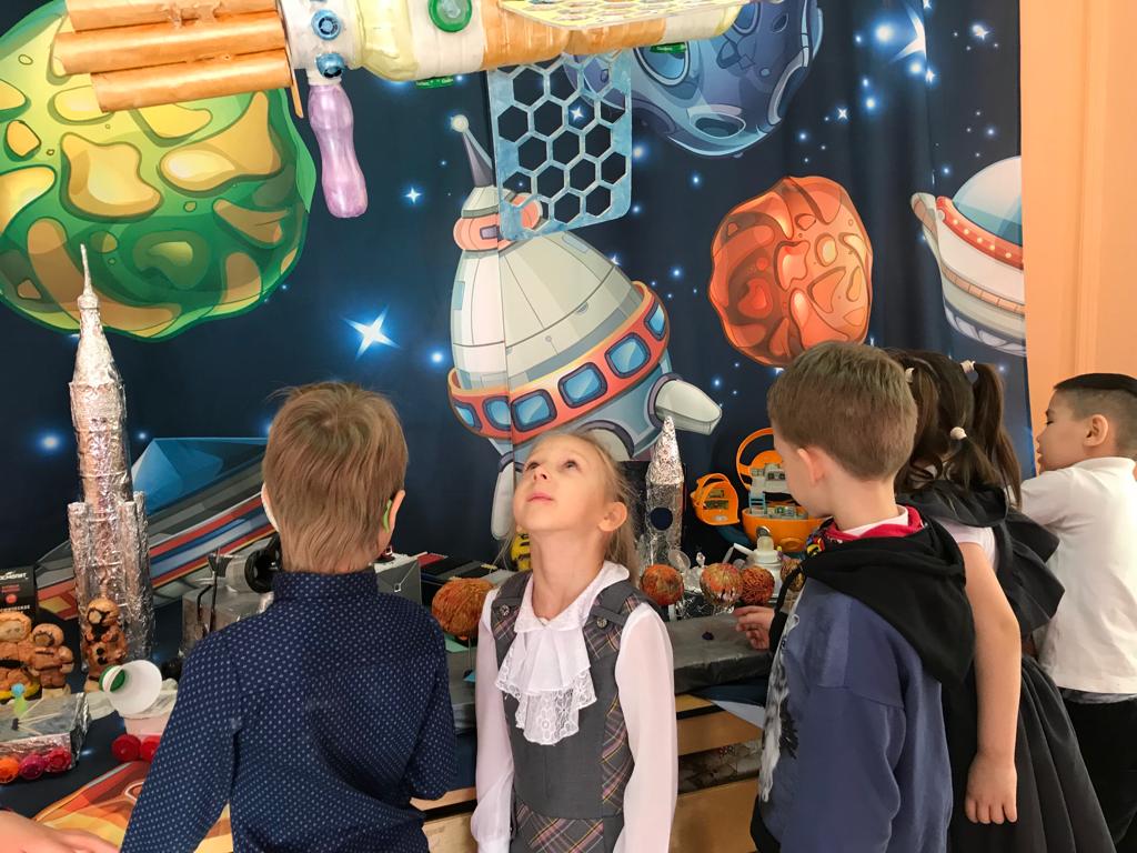 А после такого увлекательного космического путешествия первоклассники посетили экспозицию на тему Космоса.