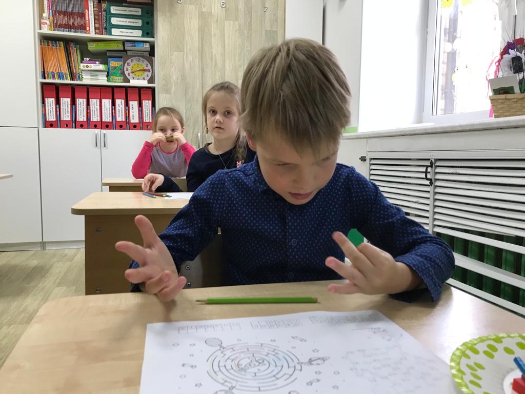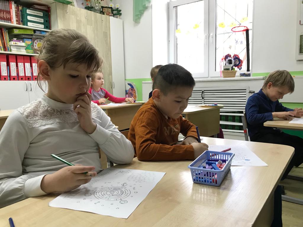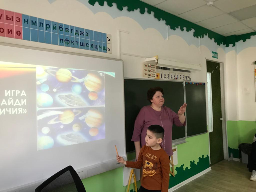 в детском саду - Малова Екатерина Андреевна провела с учащимися 1-го класса математическую игру "Космическое Путешествие".