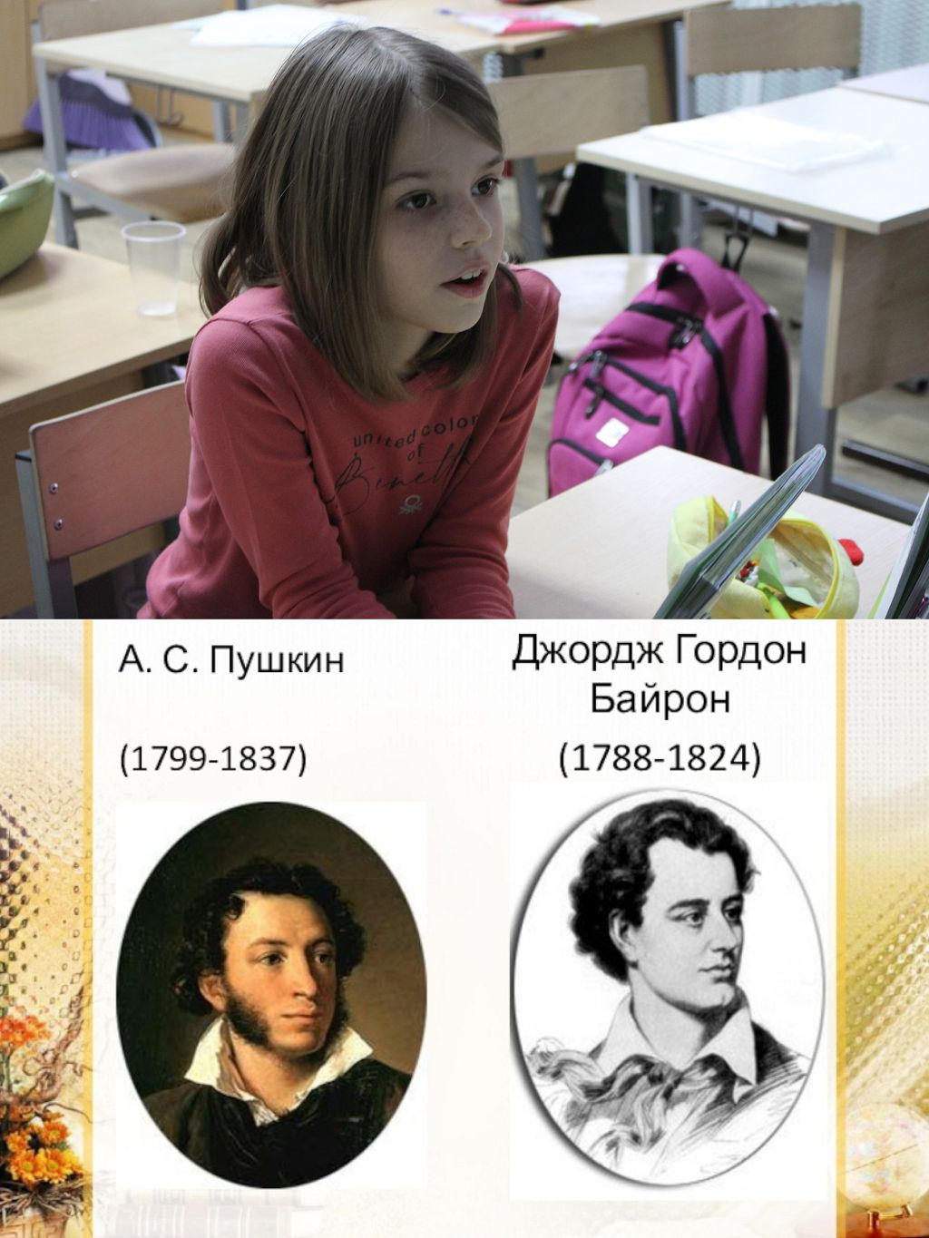 Говоря о поэзии, мы не могли пройти мимо юбилея Александра Сергеевича Пушкина. Мы познакомили ребят с известным английским поэтом Джорджем Гордоном Байроном,