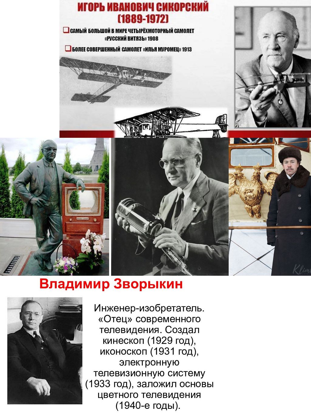 и Игоре Сикорском - изобретателе вертолёта и первых авиалайнеров.