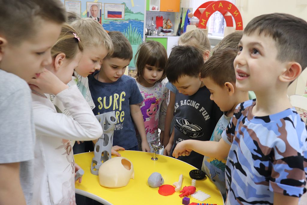 Александр Александрович, папа нашего воспитанника, как раз и занимается наукой. Он рассказал ребятам об аддитивных технологиях, 3D-принтерах и как печать на этих принтерах используется в биомедицине. Встреча прошла в формате живой беседы-презентации. Ребята слушали выступление гостя очень внимательно и с большим интересом. Причём, Александр Александрович принёс детям для ознакомления потрясающие вещи, напечатанные на 3D-принтере в их лаборатории. После этой встречи все дети сразу захотели стать учёными. 😊
