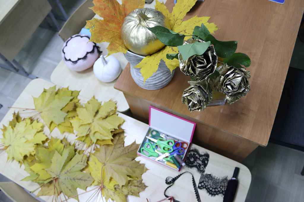 Mастер-класс в рамках семейного клуба Школы «Морозко» по декоративно-прикладному искусству "Осенний декор. Делаем букет роз из осенних листьев".