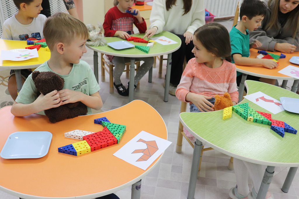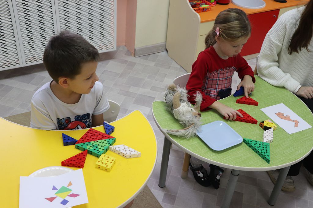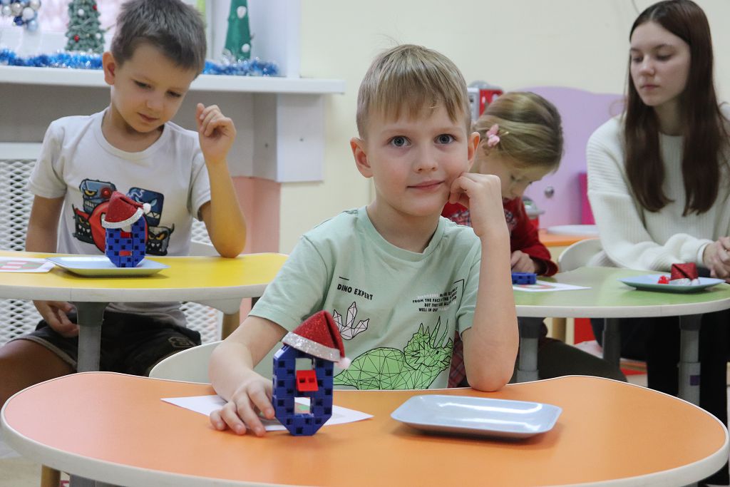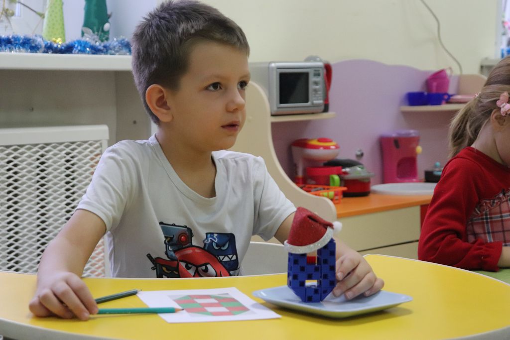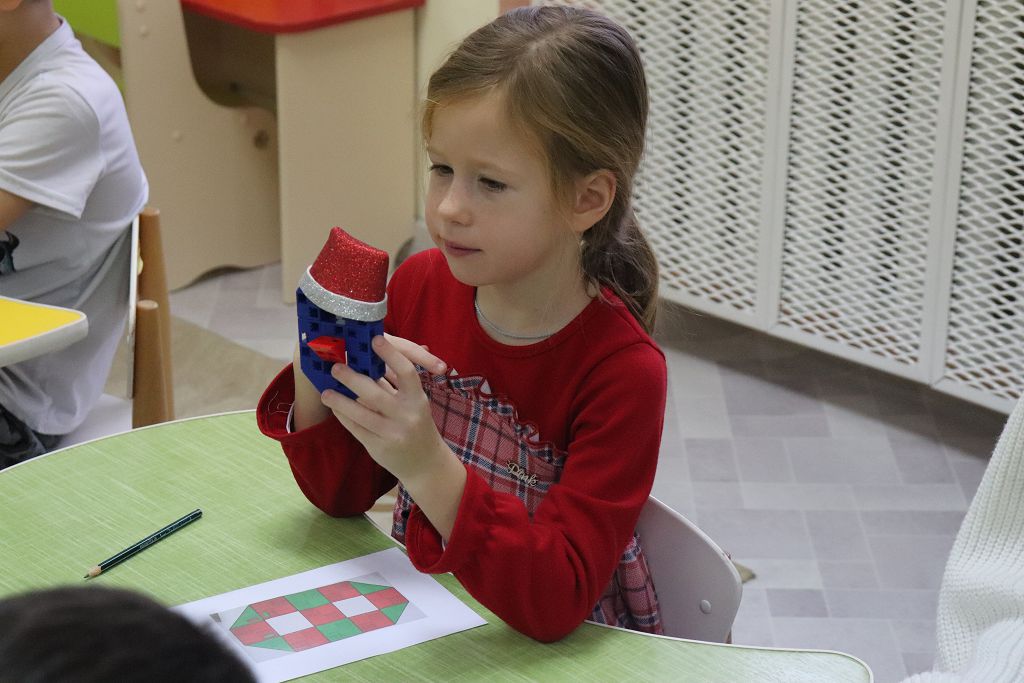 Все задания выстроены с использованием набора "Математика" Академии Наураши. С помощью кодовой таблицы раскодировали название деревни, из набора сделали снеговиков-помощников Деду Морозу. А затем и снеговикам помогали, собирали из деталей танграма фигуры игрушек. За старание и умение подарил Дед Мороз нашим детям подарок "Новогодняя геометрия". С нетерпением будем ждать нашу следующую встречу!