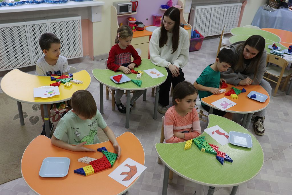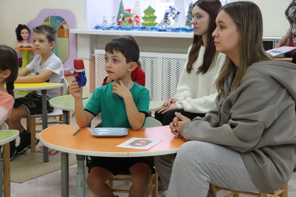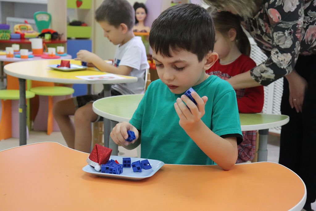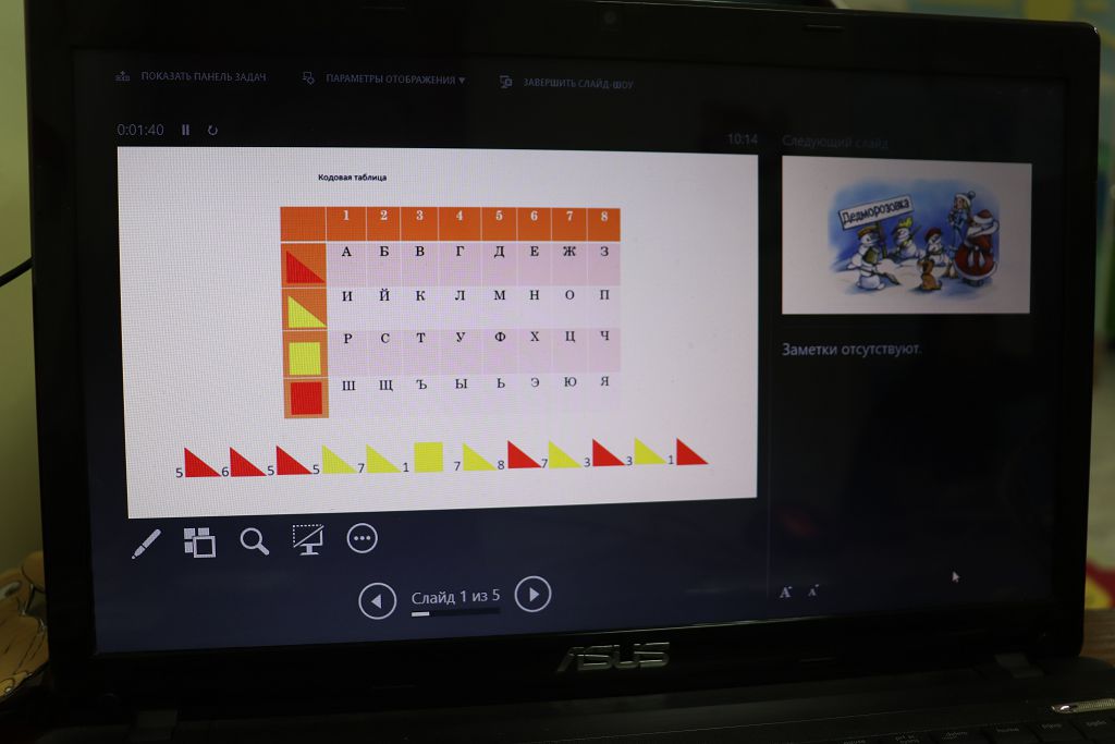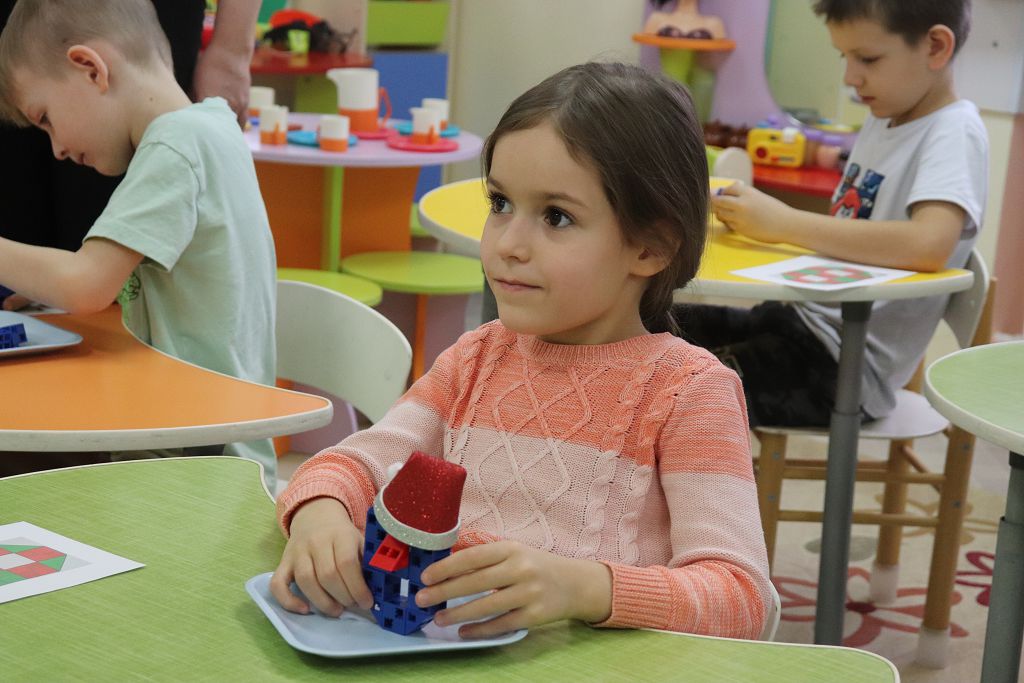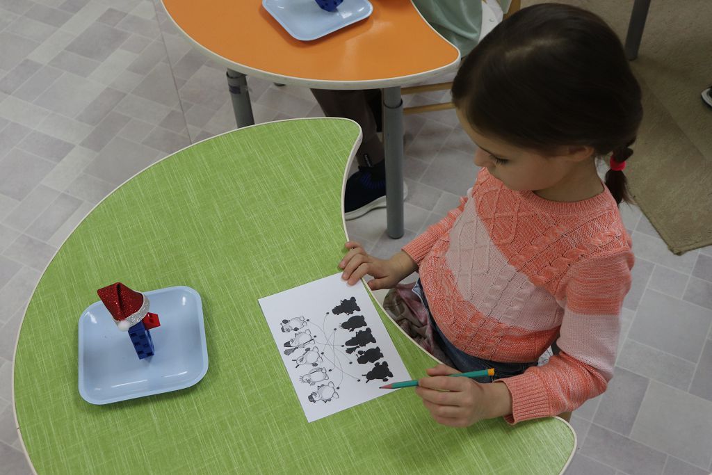 Все задания выстроены с использованием набора "Математика" Академии Наураши. С помощью кодовой таблицы раскодировали название деревни, из набора сделали снеговиков-помощников Деду Морозу. А затем и снеговикам помогали, собирали из деталей танграма фигуры игрушек. За старание и умение подарил Дед Мороз нашим детям подарок "Новогодняя геометрия". С нетерпением будем ждать нашу следующую встречу!