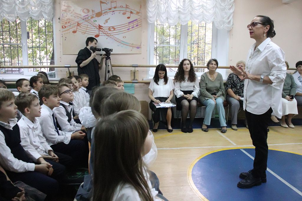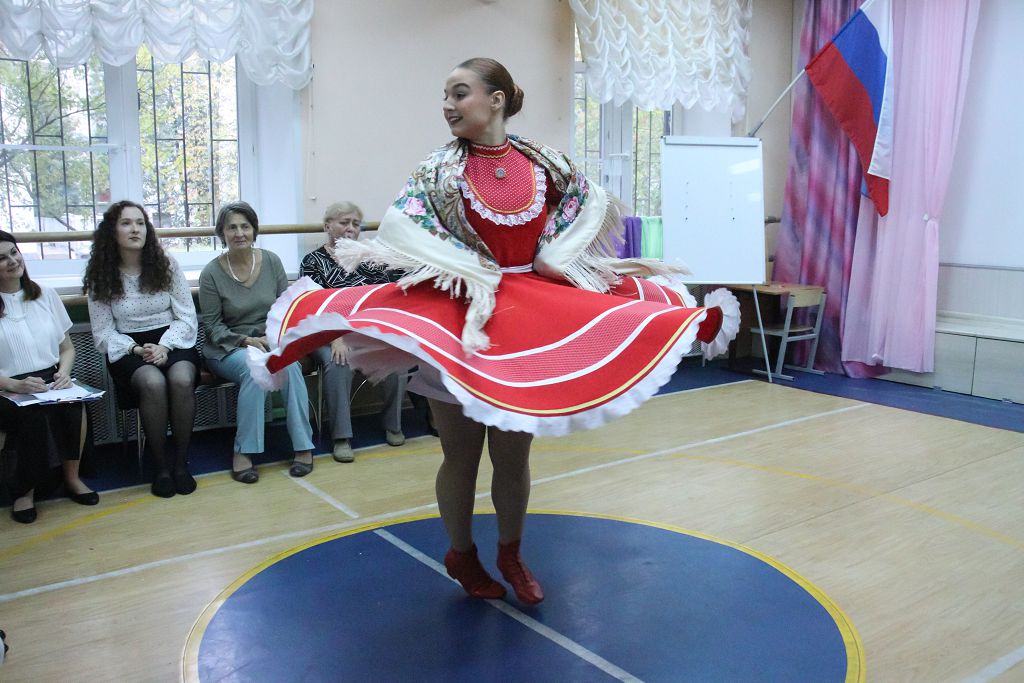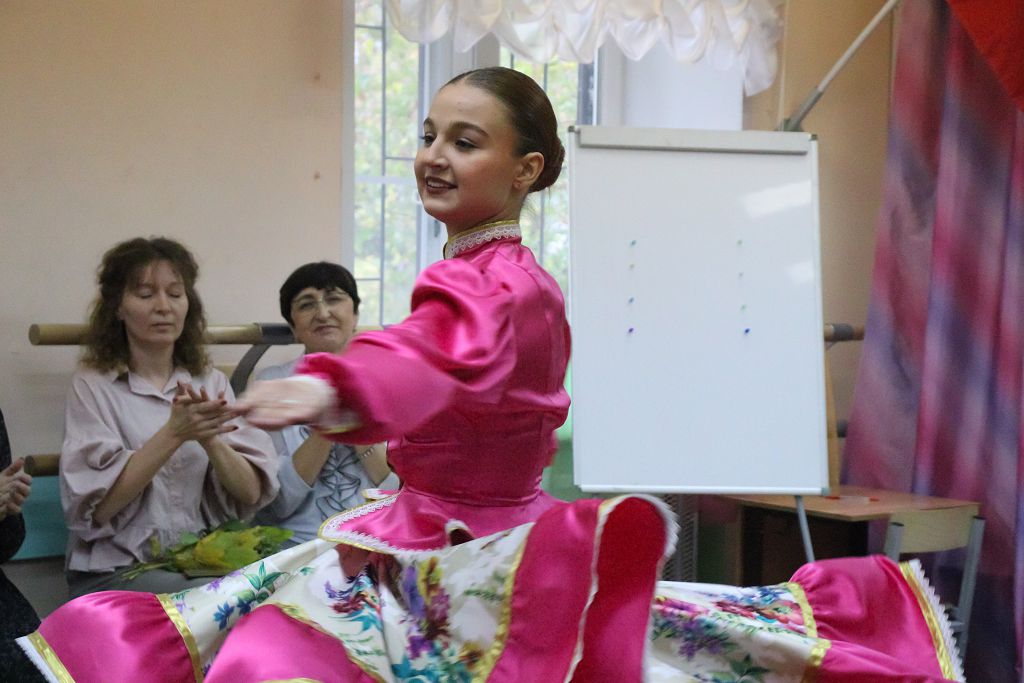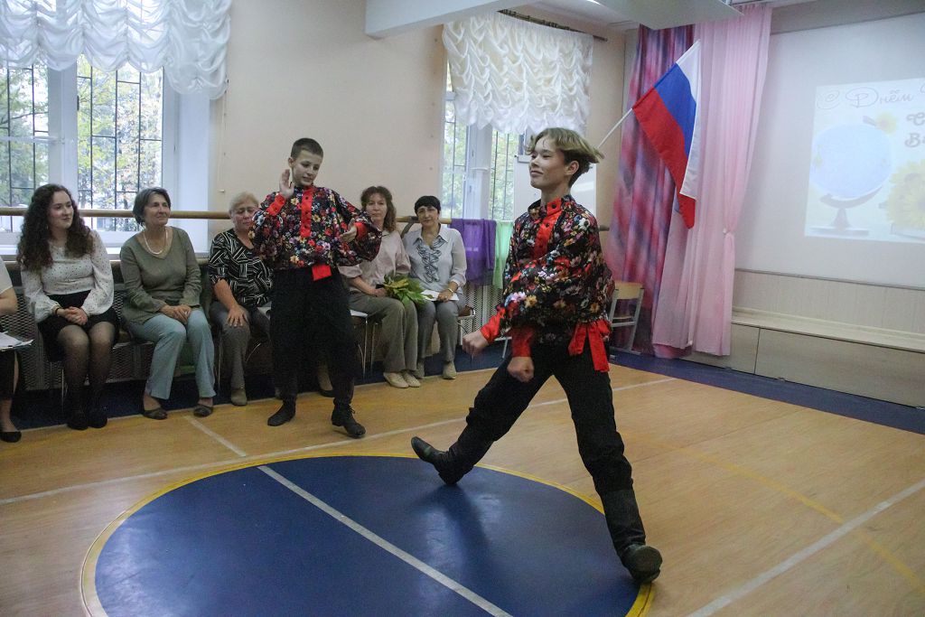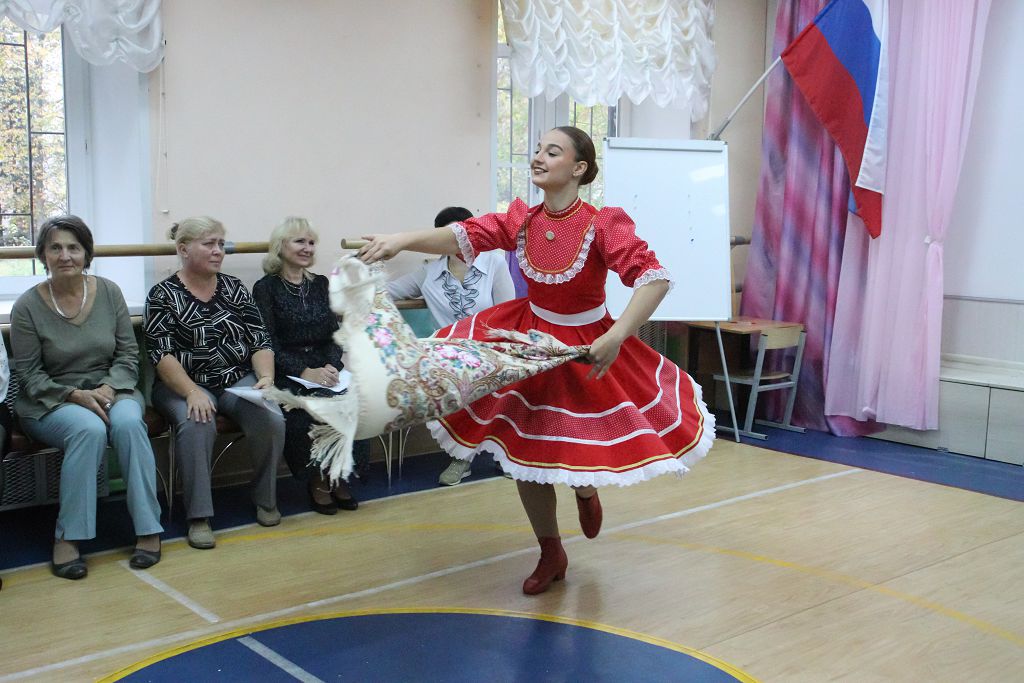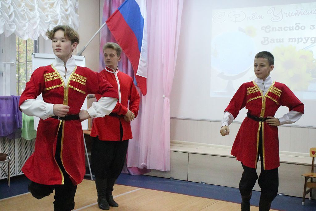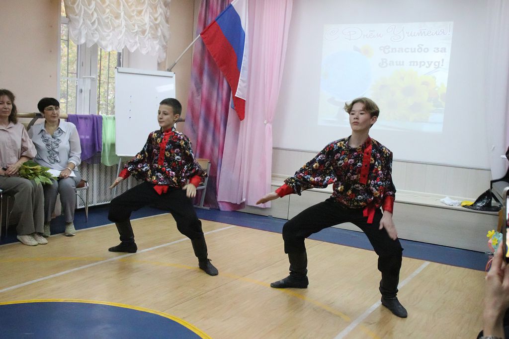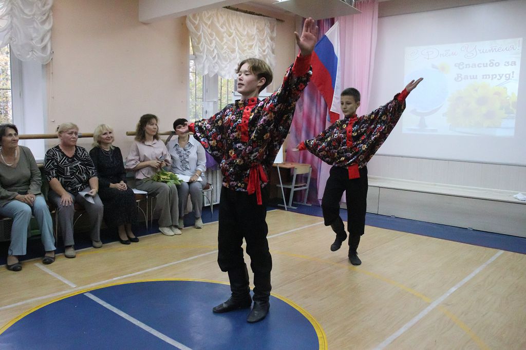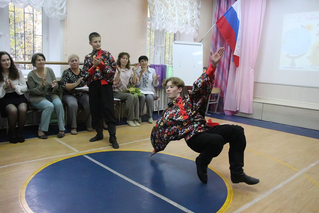 Она подготовила в этот день подарок учителям, для которых очень ярко выступили воспитанники ее ансамбля.