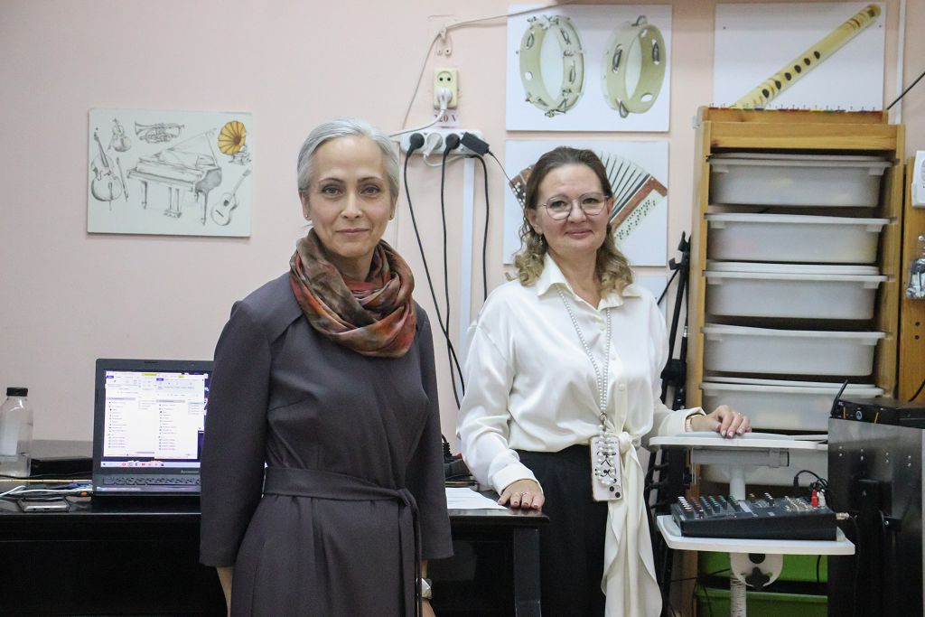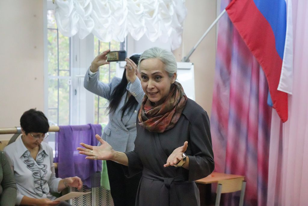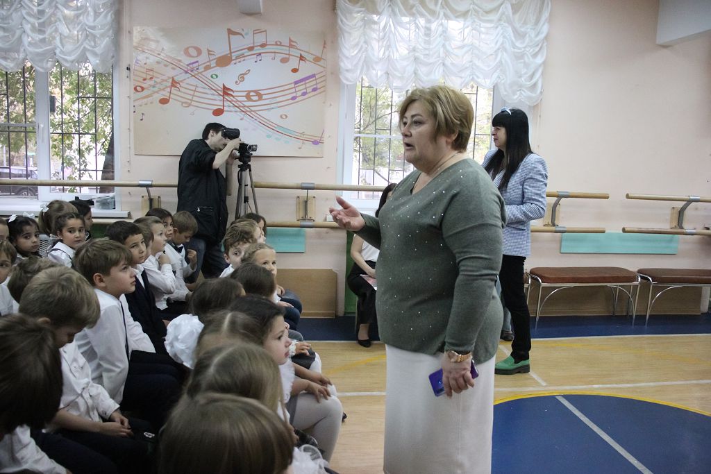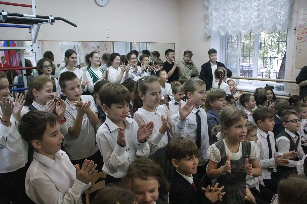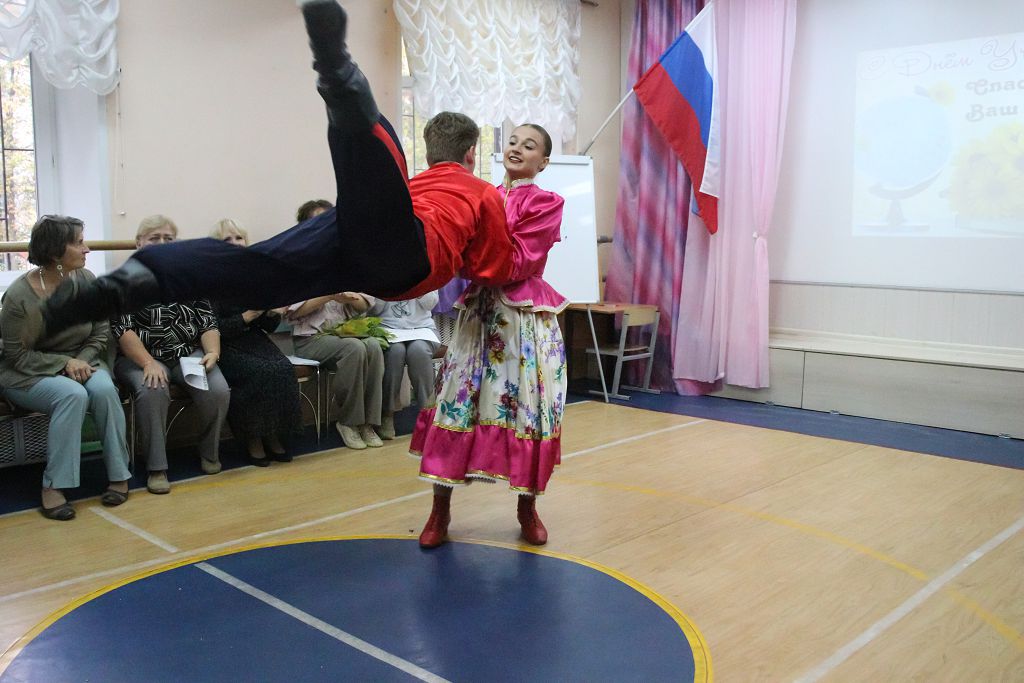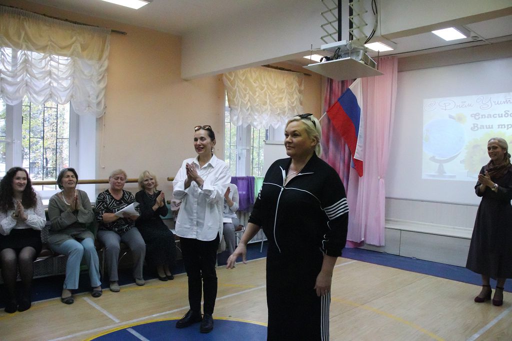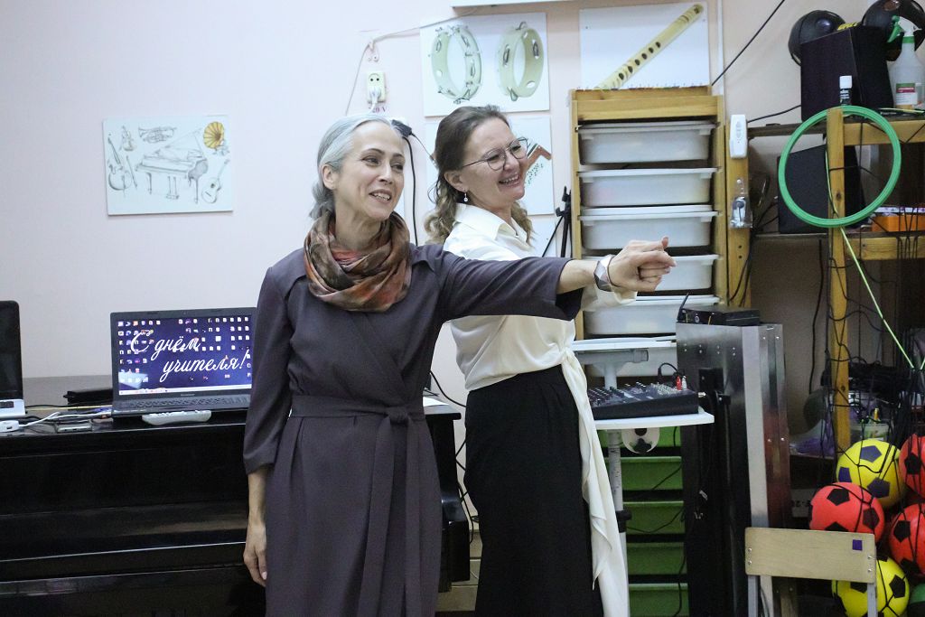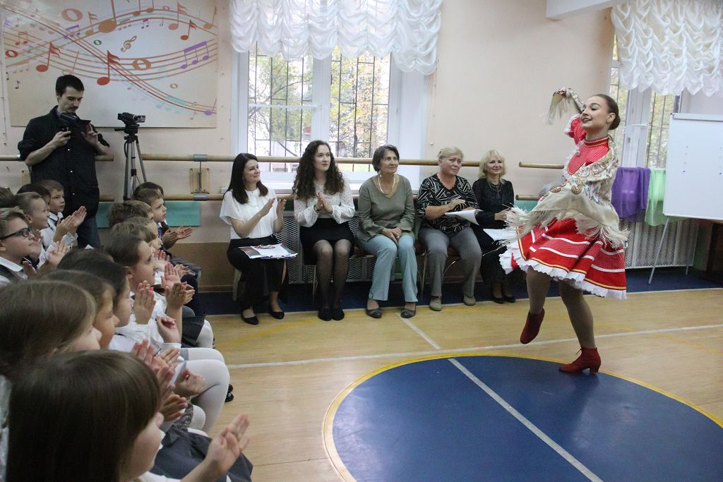 Она подготовила в этот день подарок учителям, для которых очень ярко выступили воспитанники ее ансамбля.