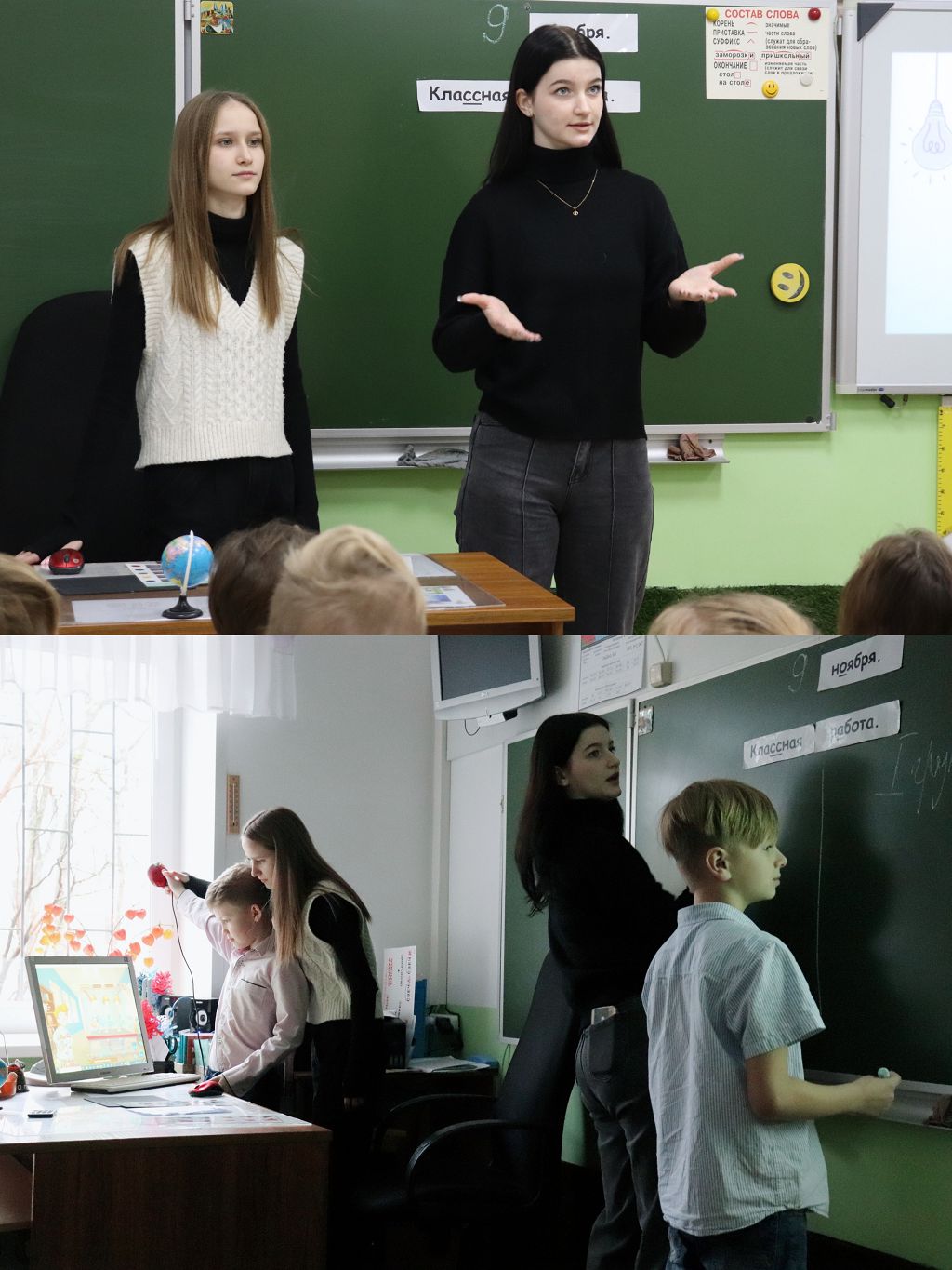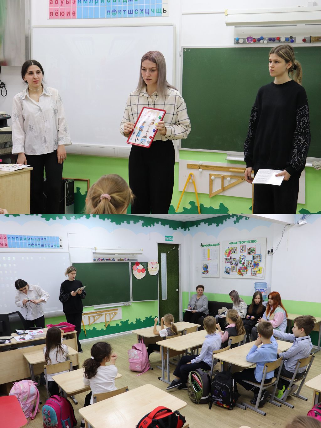 В видеоролике можно увидеть, с каким увлечением дети участвуют в процессе и как "горят глаза" у студентов, какой прекрасный контакт установлен между ними и учащимися.