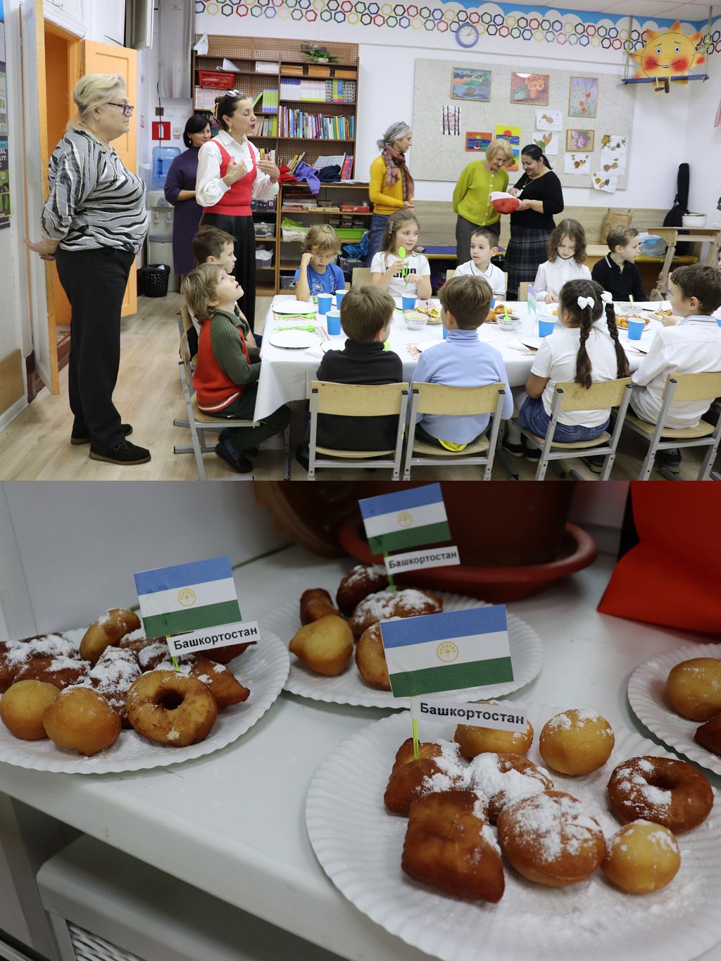 Путем жеребьевки было разделено по классам и группам изготовление национальных блюд (башкирские баурсаки, татарский чак-чак, кабардино-балкарский хворост-лакум,