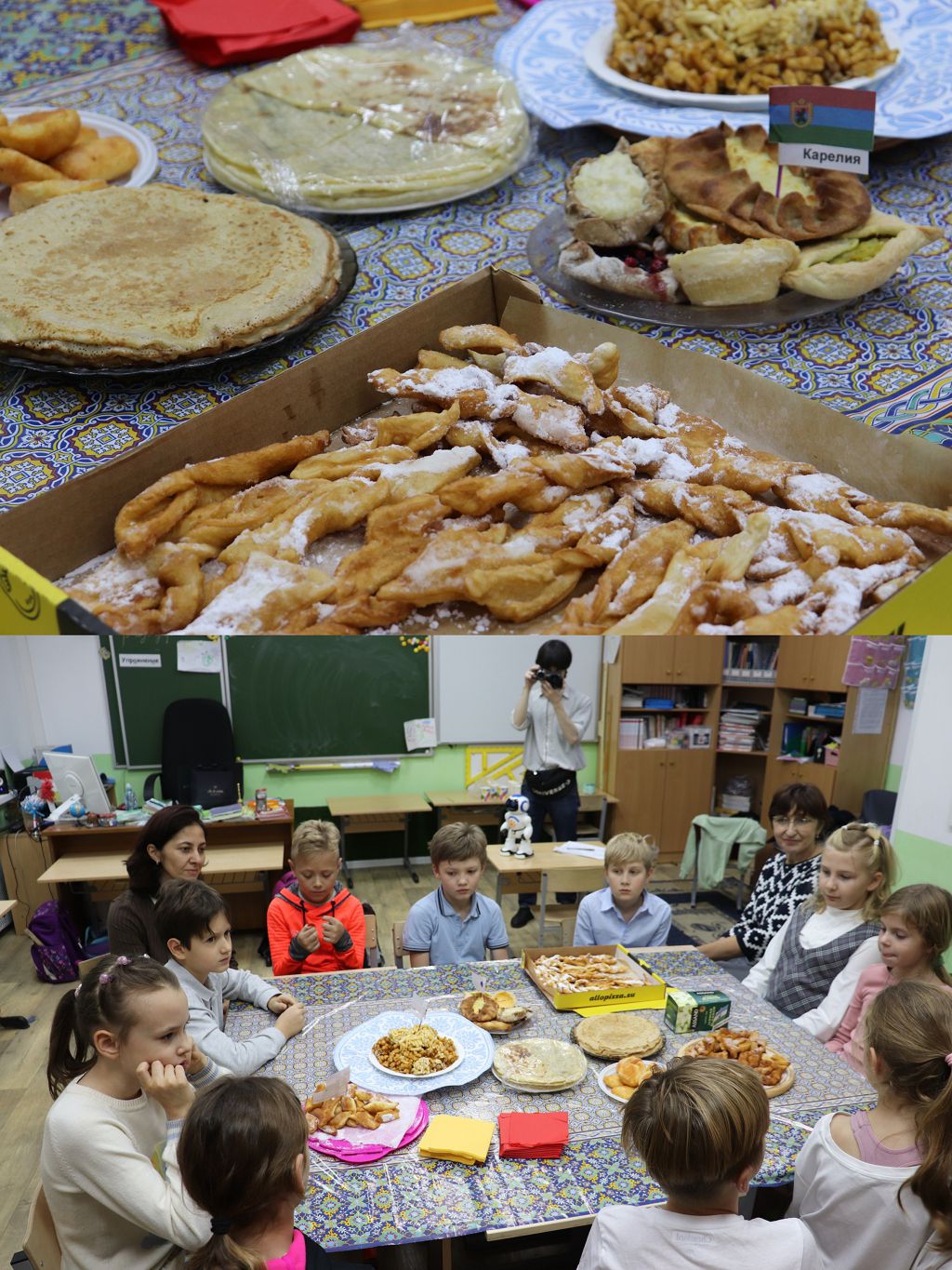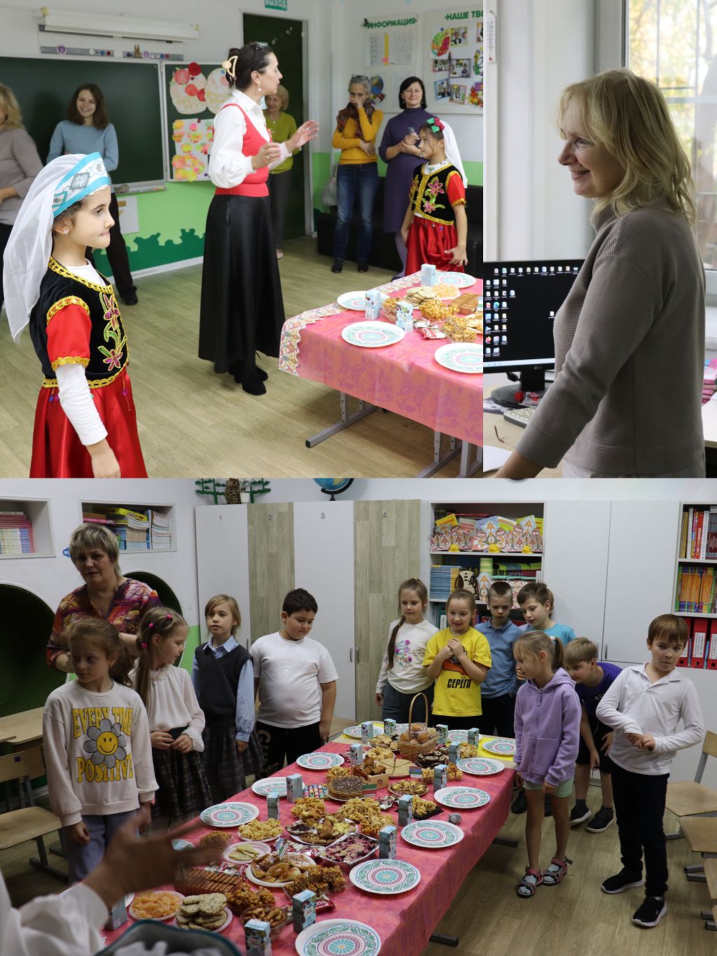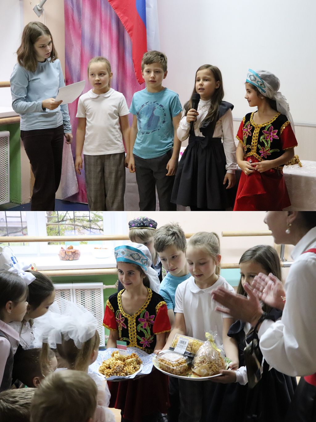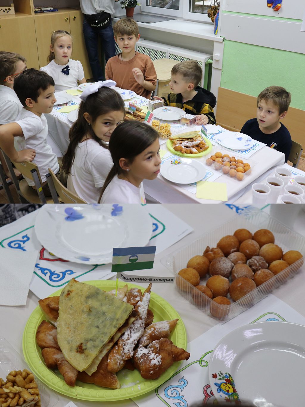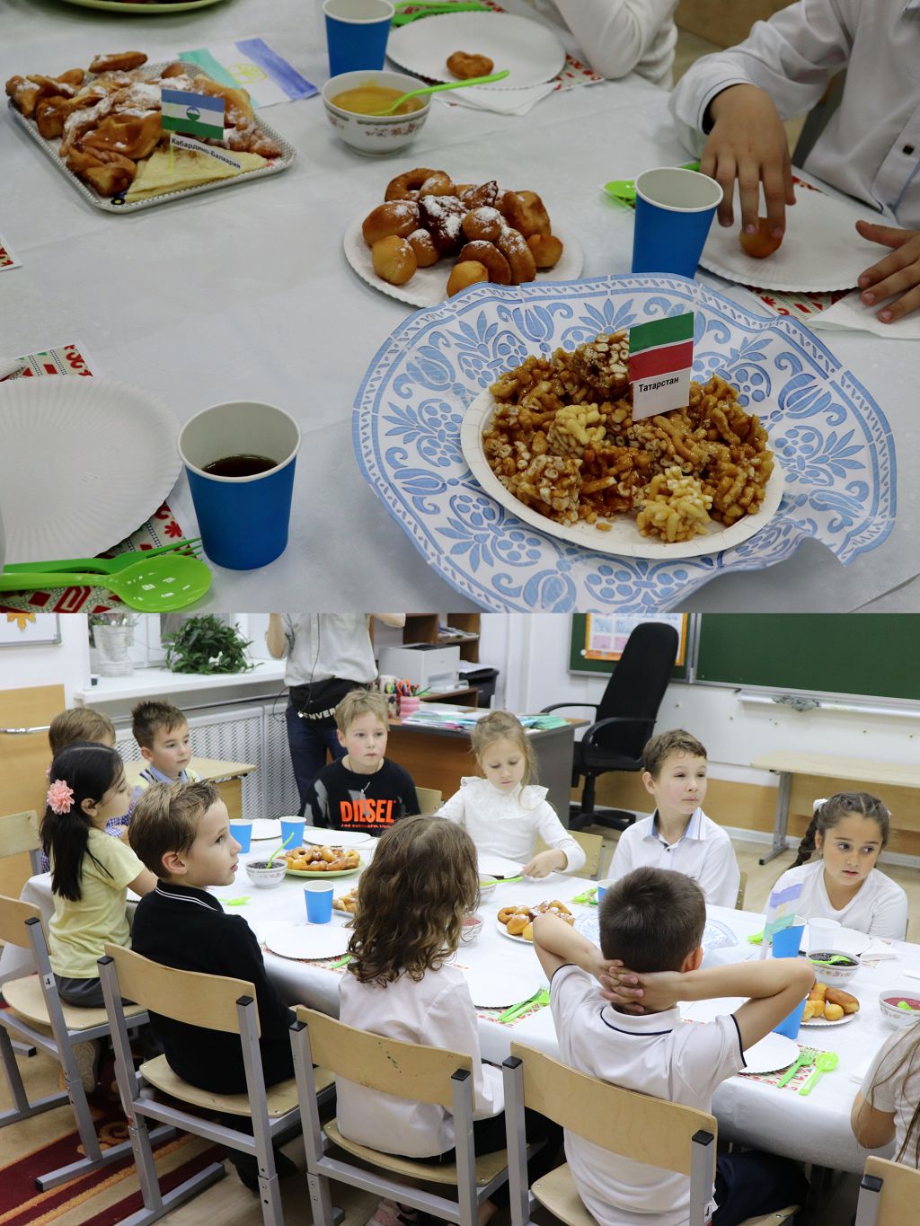 учатся заботливо делиться со своими одноклассниками, угощая друг друга национальными блюдами, изготовленными в домашних условиях,