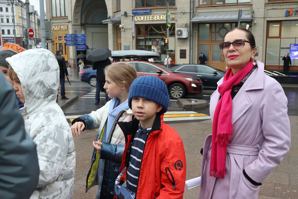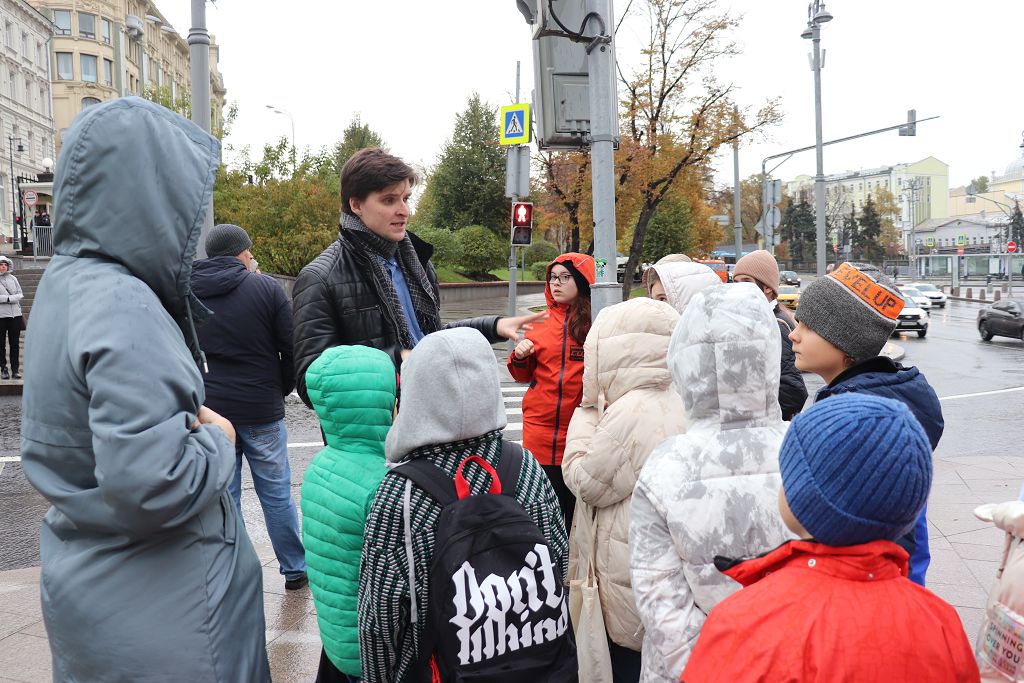 на улице Варвака. Ребята узнали о происхождении названия "Зарядье". Название местность получила от района, который располагался "за рядами" торговых лавок.