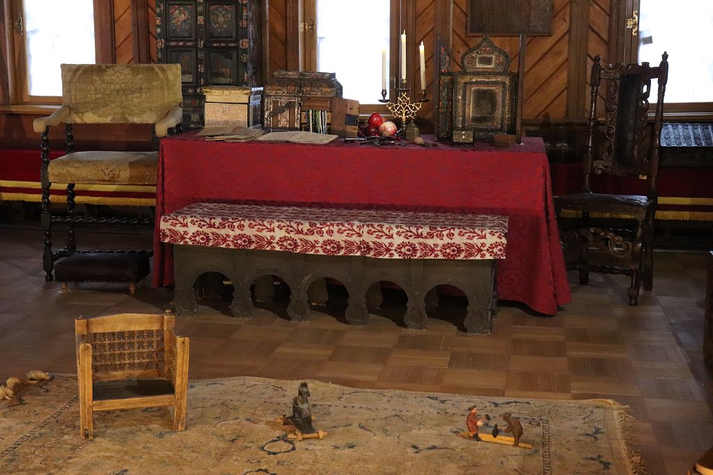 изготовленной с аналогов мебели Теремного дворца, Ипатьевского монастыря, а также с изображений на миниатюрах, грамотах, тканях XVI—XVII веков.