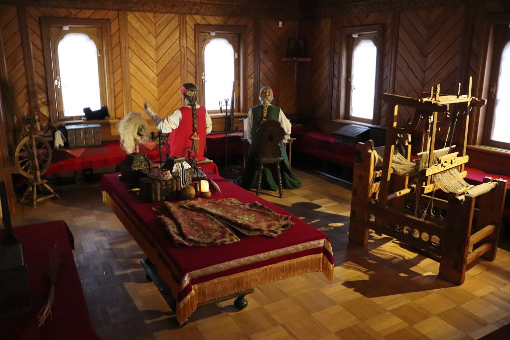 Экспозиция музея включала девять помещений: поварню, крестовую, молельню, боярскую, девичью, детскую, вышку, опочивальню и светлицу. Их обставили мебелью,
