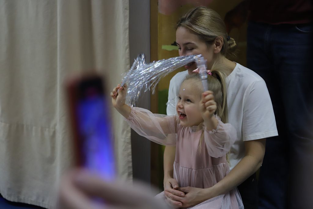 Дети пришли на праздник веселые и нарядные в предвкушении чудес. И началось волшебство. Старшие дети из-за непогоды застряли в аэропорту и не