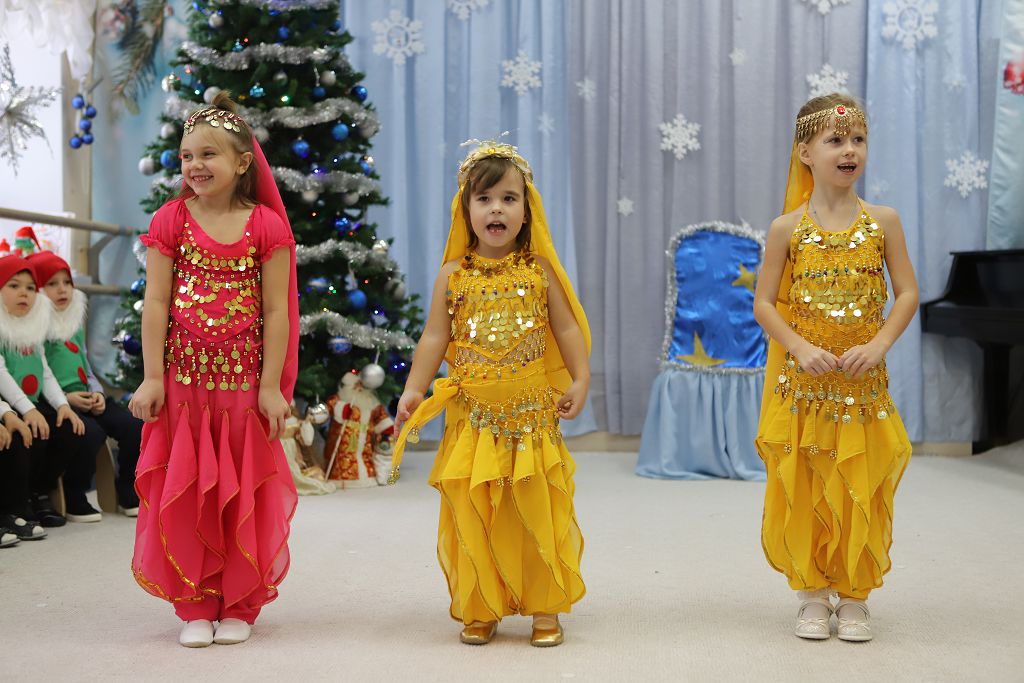 встречены восточные красавицы, гномики, мушкетёры, звёздочки, прозвучали новогодние песни, стихи, танцы. Дети средней группы, чтобы встретить Новый год,