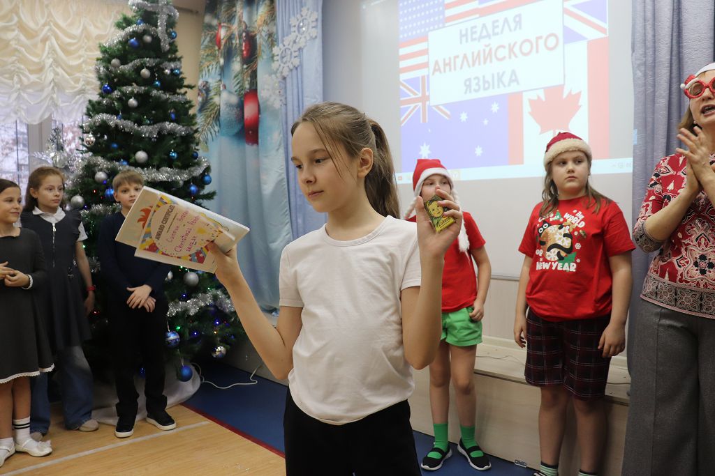 В этом учебном году неделя Английского языка пришлась на конец декабря и получилась веселой и новогодней . В первый день мы знакомились с новогодними и рождественскими традициями разных стран мира. Второй день был днём Рождественской истории. Старшие ребята знакомились со знаменитой Christmas Carol Чарльза Дикенса, а младшие с историей Рудольфа, главного оленя Санта Клауса. Говорили мы о том что такое Рождественские колядки и гимны. Слушали русские и английские колядки. Father Frost, наш любимый Дед Мороз любит загадывать загадки. Вот и мы с третий день ломали головы над разгадыванием загадок и это было очень увлекательно! Четвертый день - день Новогоднего квеста, где команды выполняли и искали , различные задания . Побегали от души, нашли вкусные подарки под ёлкой и решили все задания! Изучать иностранный язык можно весело. По итогам всех дней, многие ребята получили призы. Merry Christmas and Happy New Year!